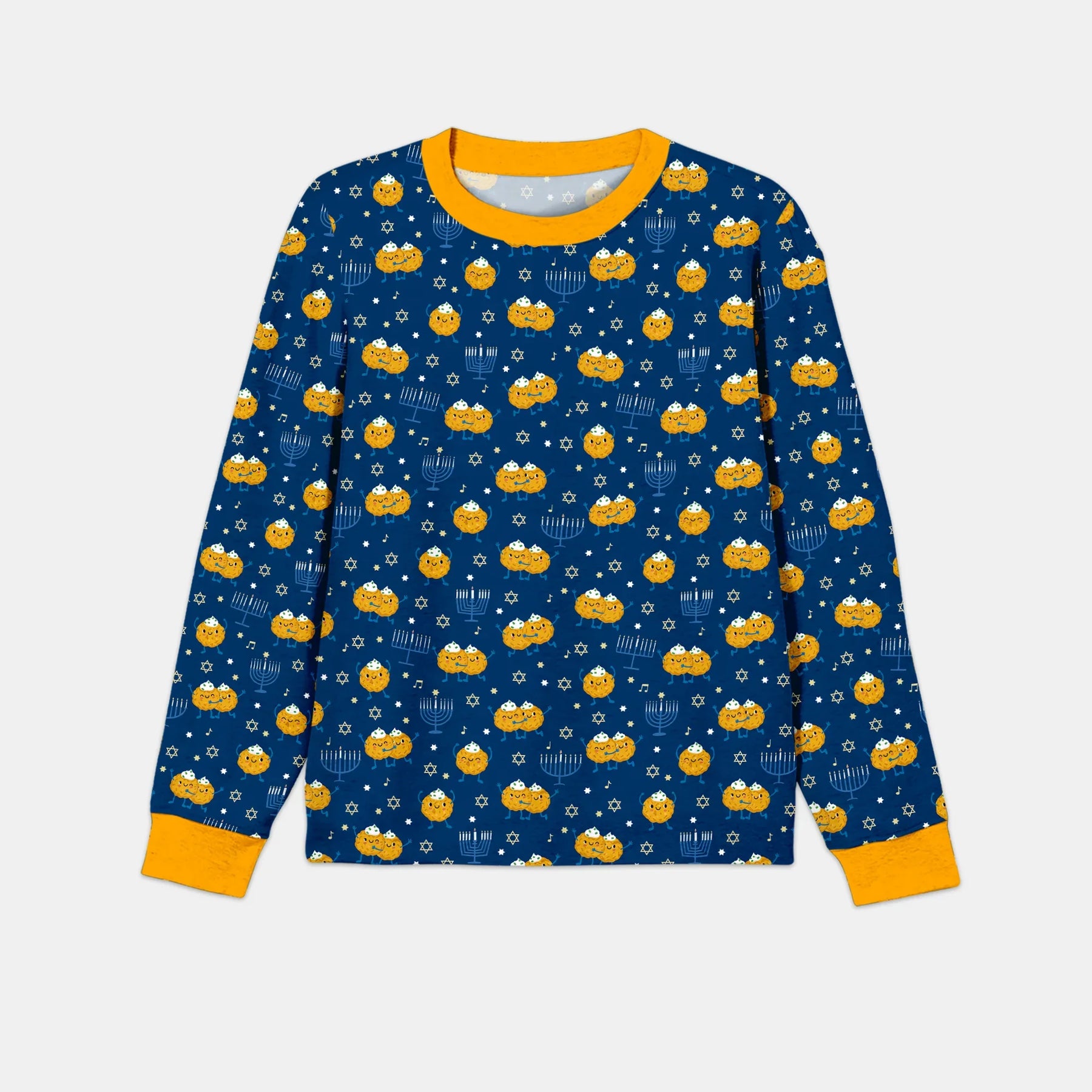 Celebrate Hanukkah in cozy style with our Sweet Latke Collection! Featuring adorable smiling latkes, menorahs, and stars on a deep blue background — this soft, breathable bamboo set brings warmth, joy, and festive charm to every little one’s wardrobe. Perfect for family holiday fun!