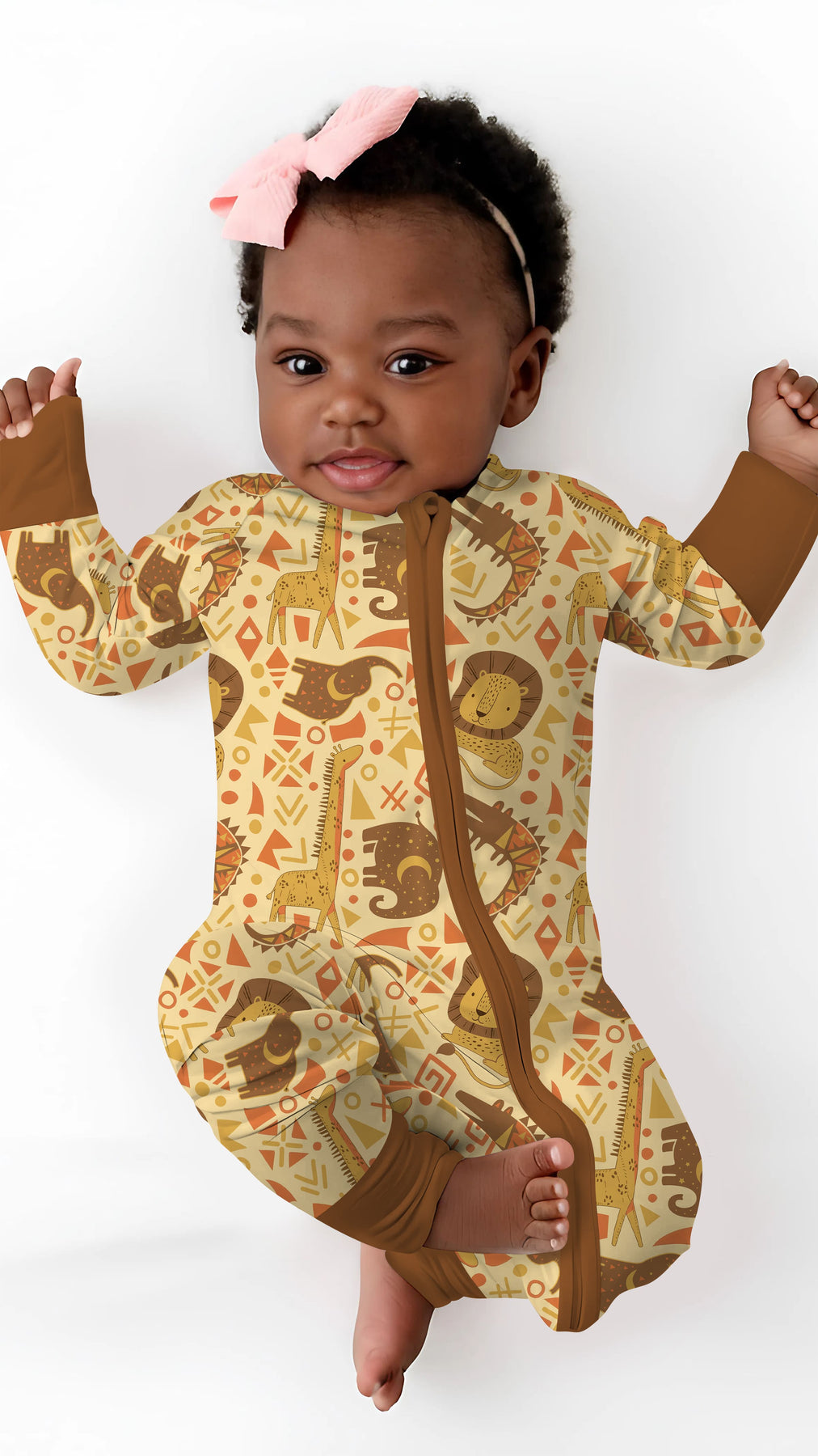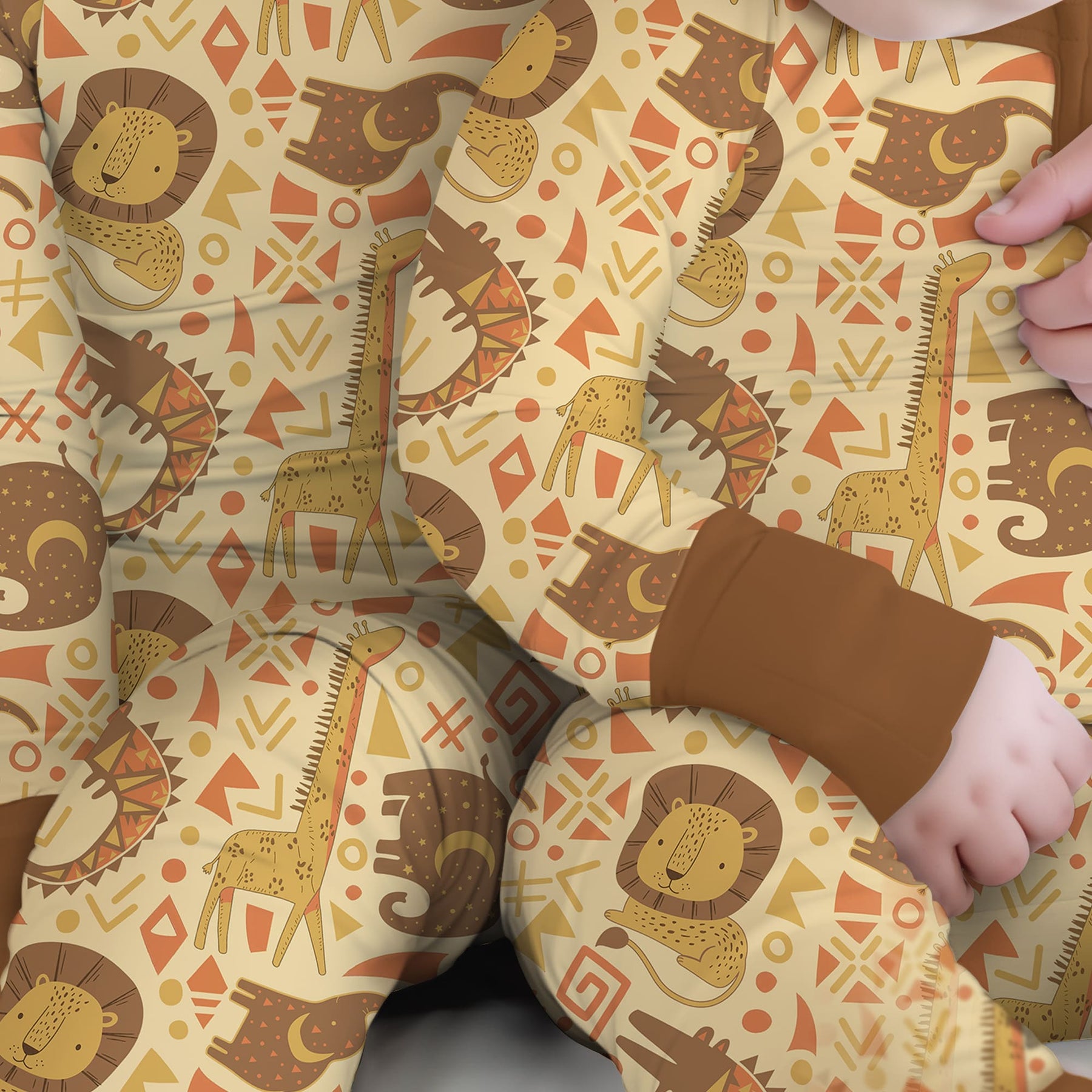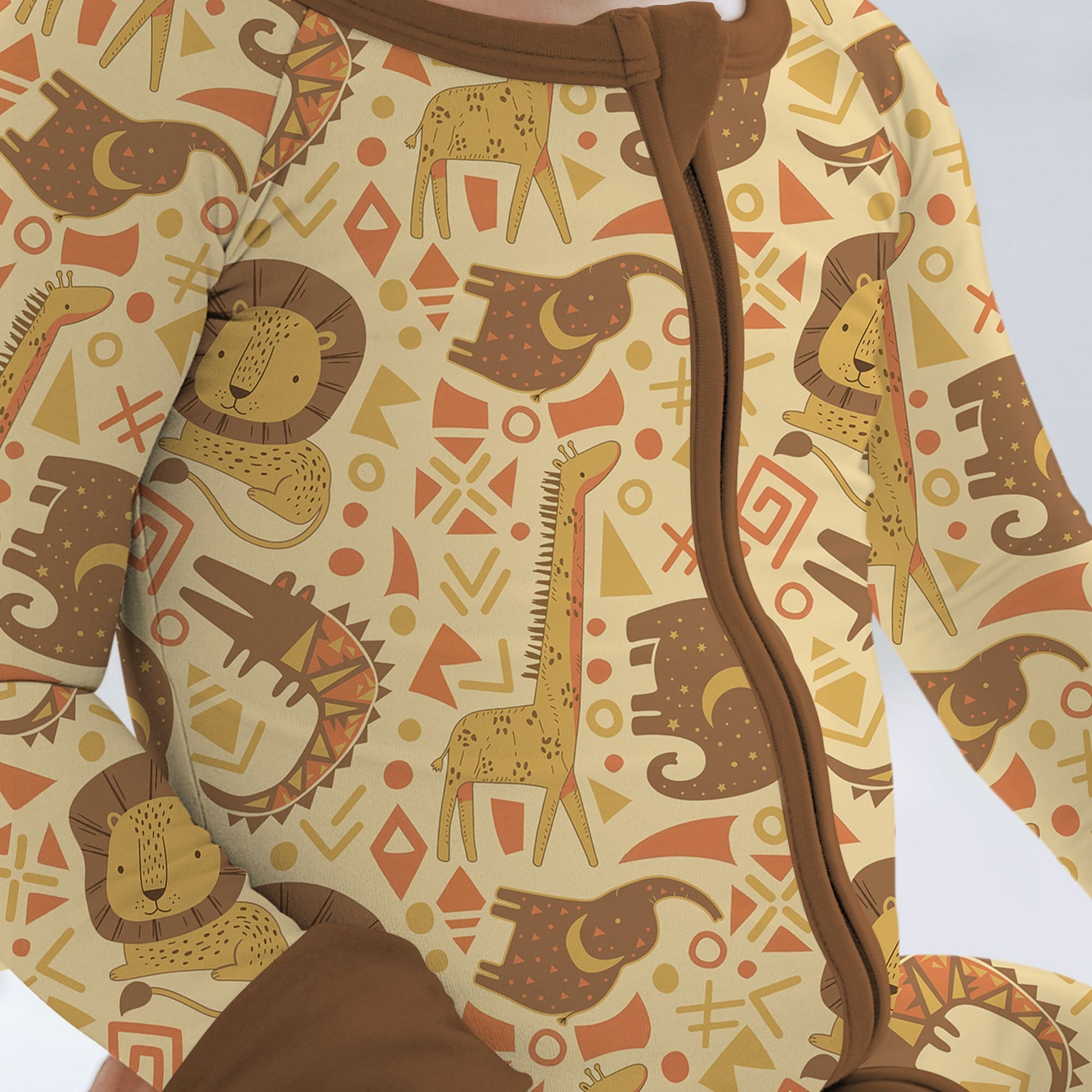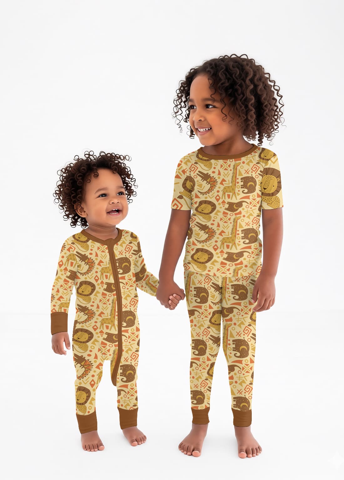 A playful safari-inspired collection featuring African animal motifs and warm earth tones, designed for soft, breathable comfort across sleepwear, loungewear, and everyday essentials for kids.