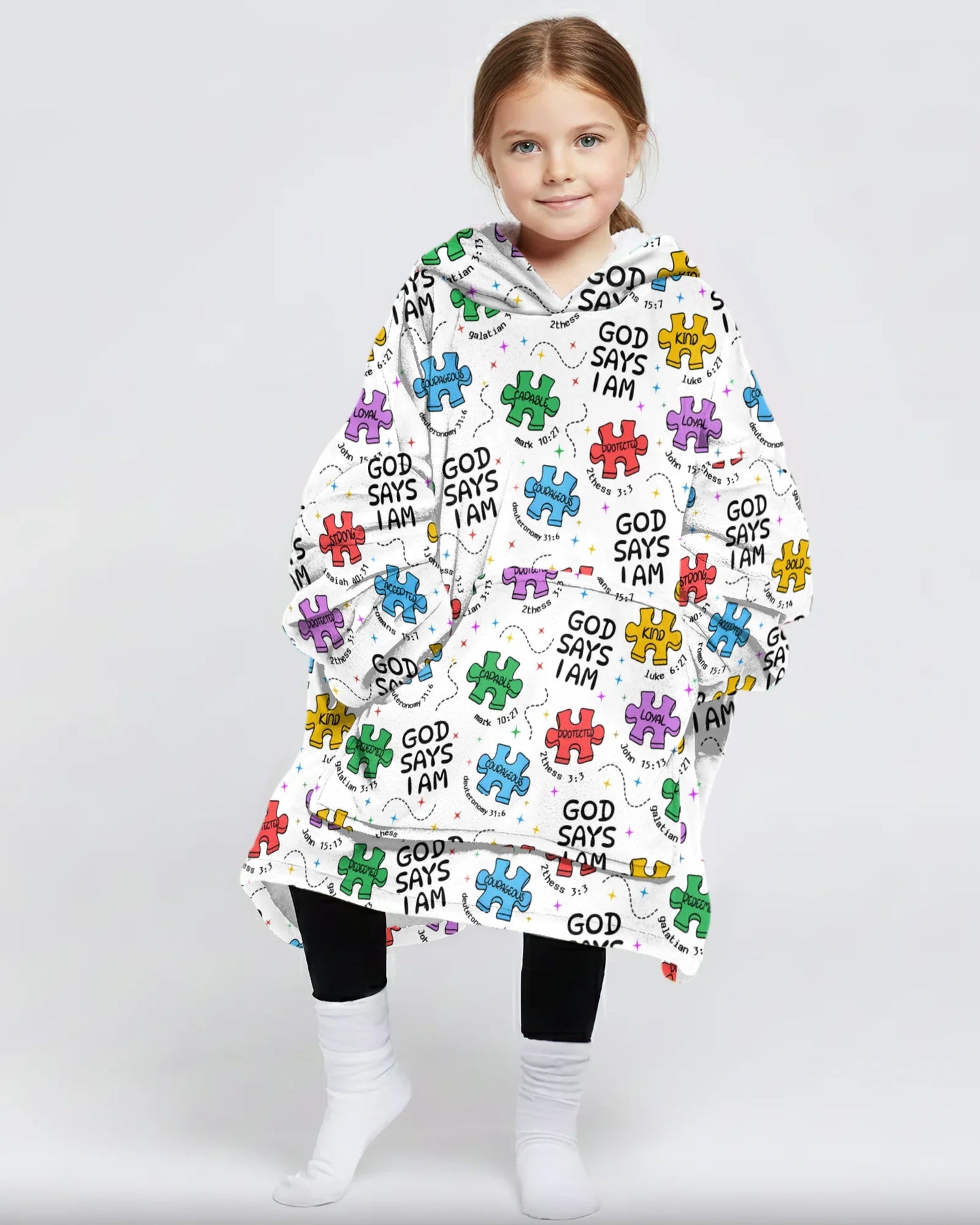 Brings acceptance, empathy, and understanding into children’s sleepwear, using playful puzzle pieces and the message “God Says I Am” to gently affirm every child’s uniqueness. It’s designed to help autistic children feel seen, valued, and comforted—wrapped in warmth, love, and reassurance at bedtime.