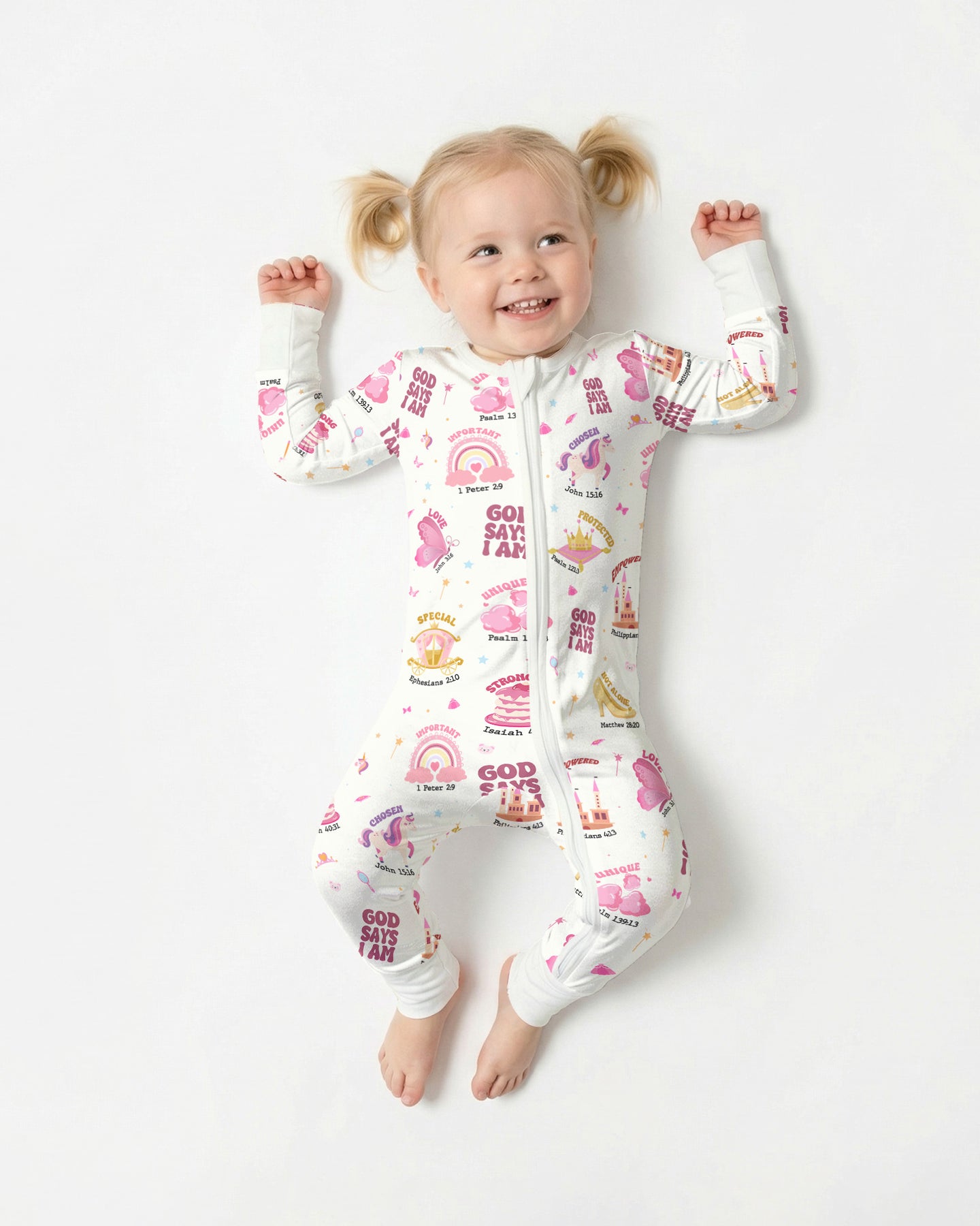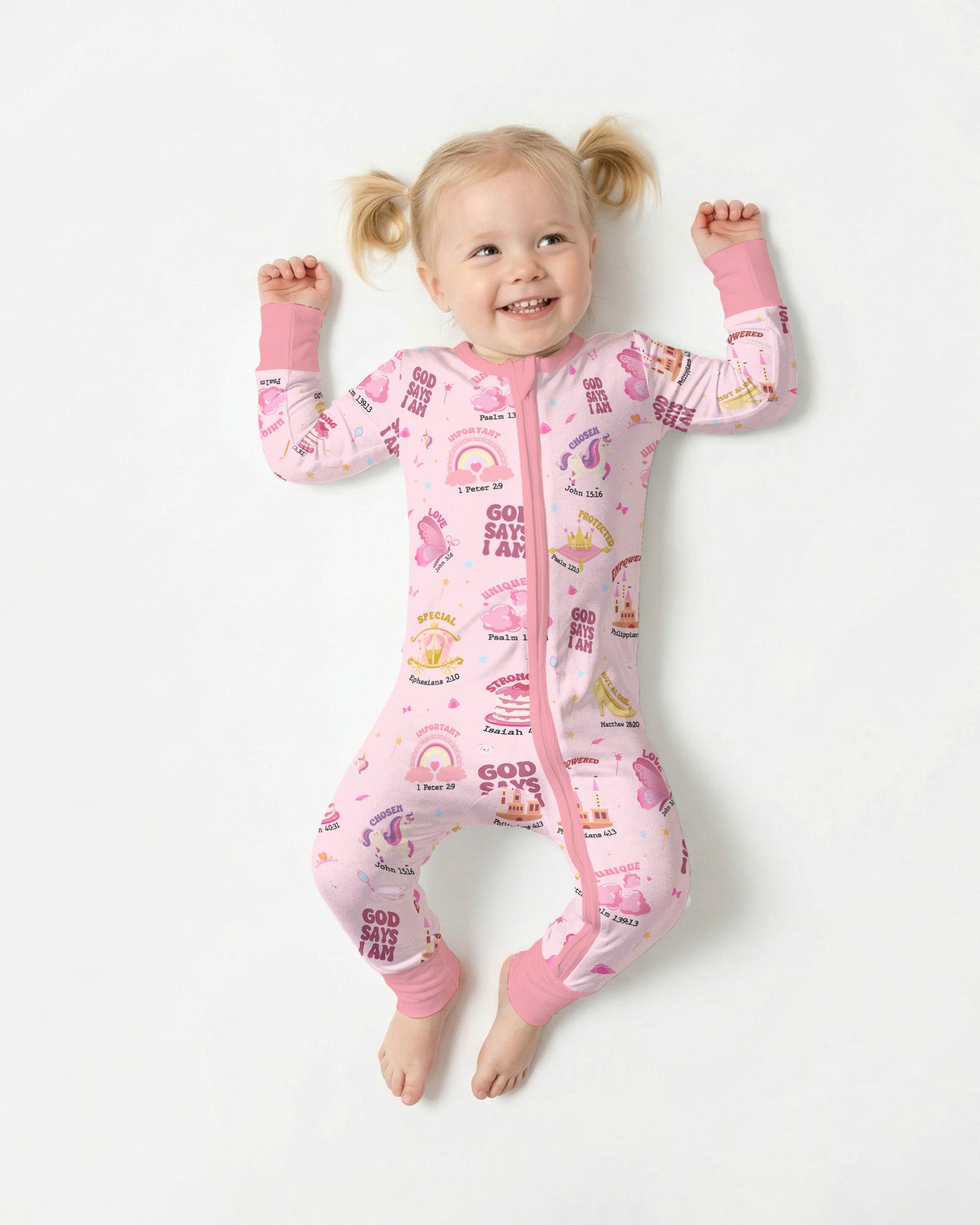 Gear up for faith-filled fun with our “God Says I Am” Princess Collection! These bamboo pieces for kids are filled with crowns, castles, rainbows, and uplifting Bible affirmations—reminding little ones of their God-given worth, uniqueness, and strength. Made from ultra-soft, breathable bamboo fabric, they’re perfect for active days, cozy nights, and every joyful moment in between.