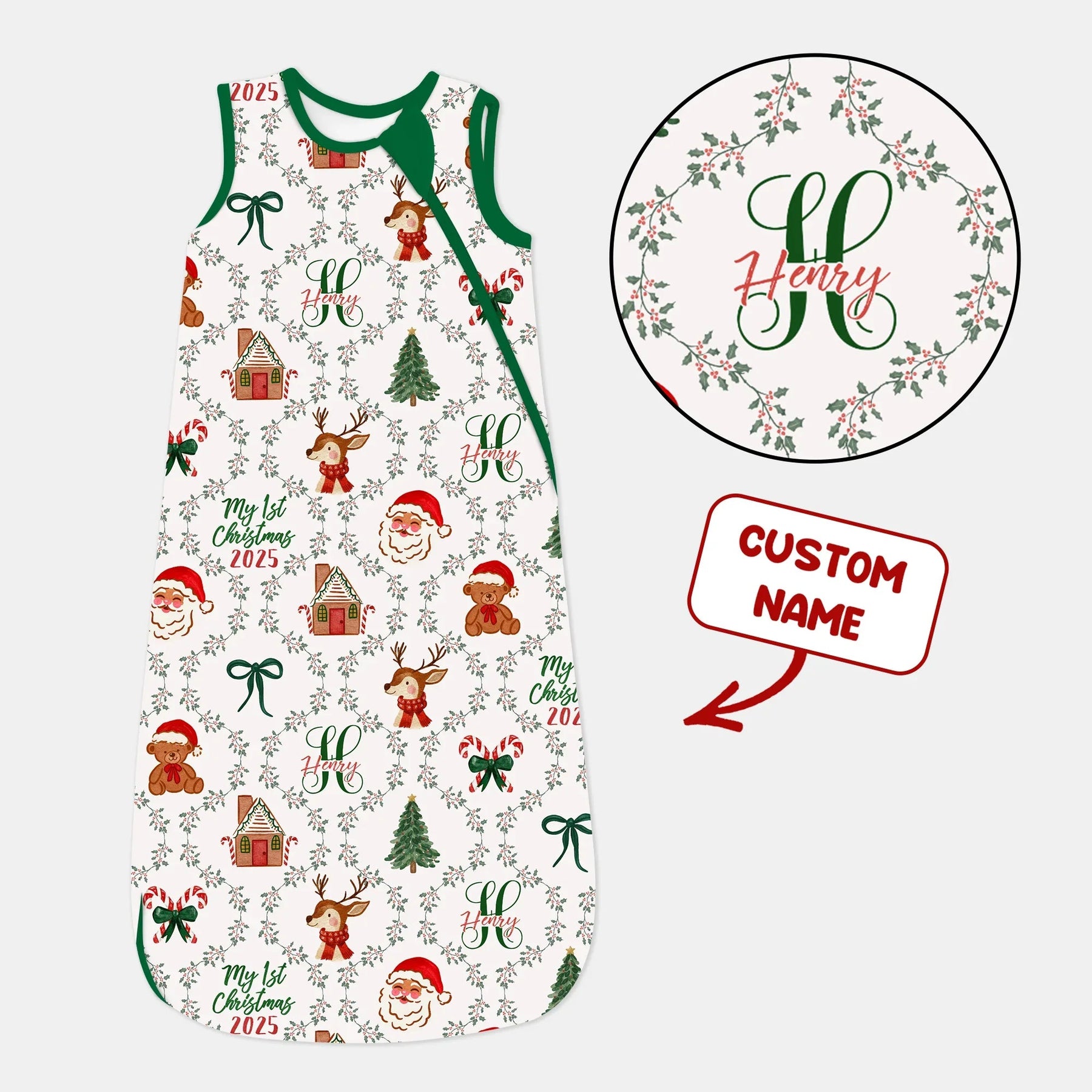 Custom name "Fancy Monogram Green Christmas 2025" Sleep Bag