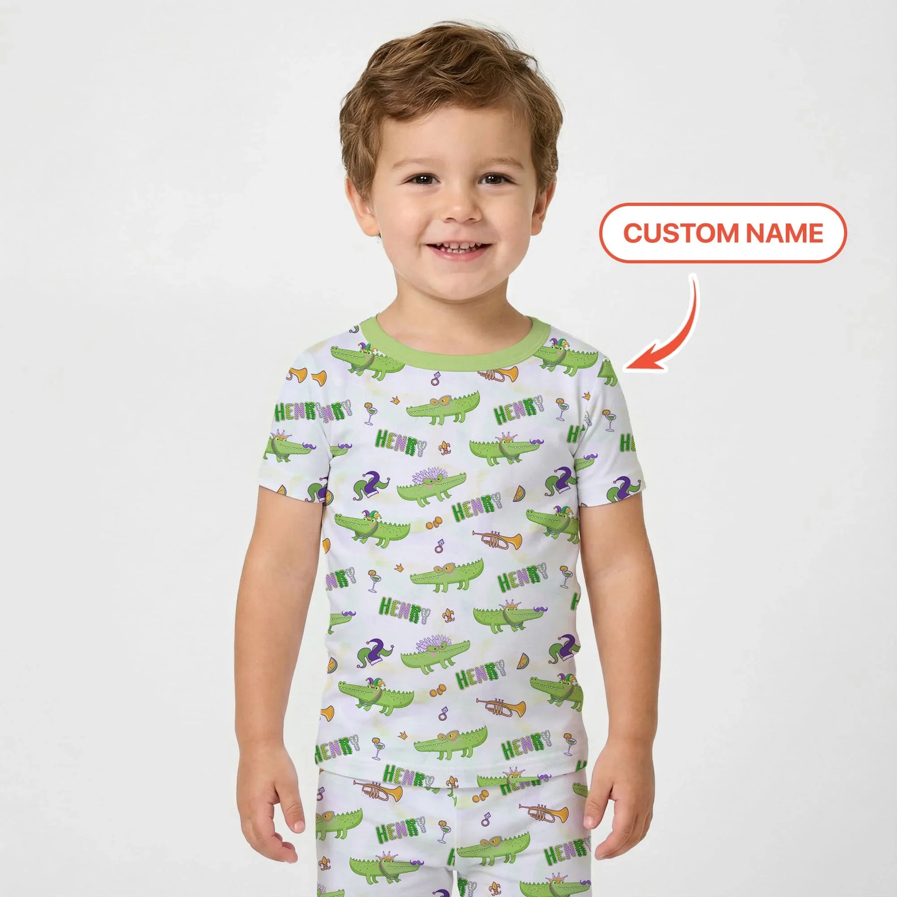 Alligator Mardi Gras Festival Two Piece Short Sleeve Pajama Set