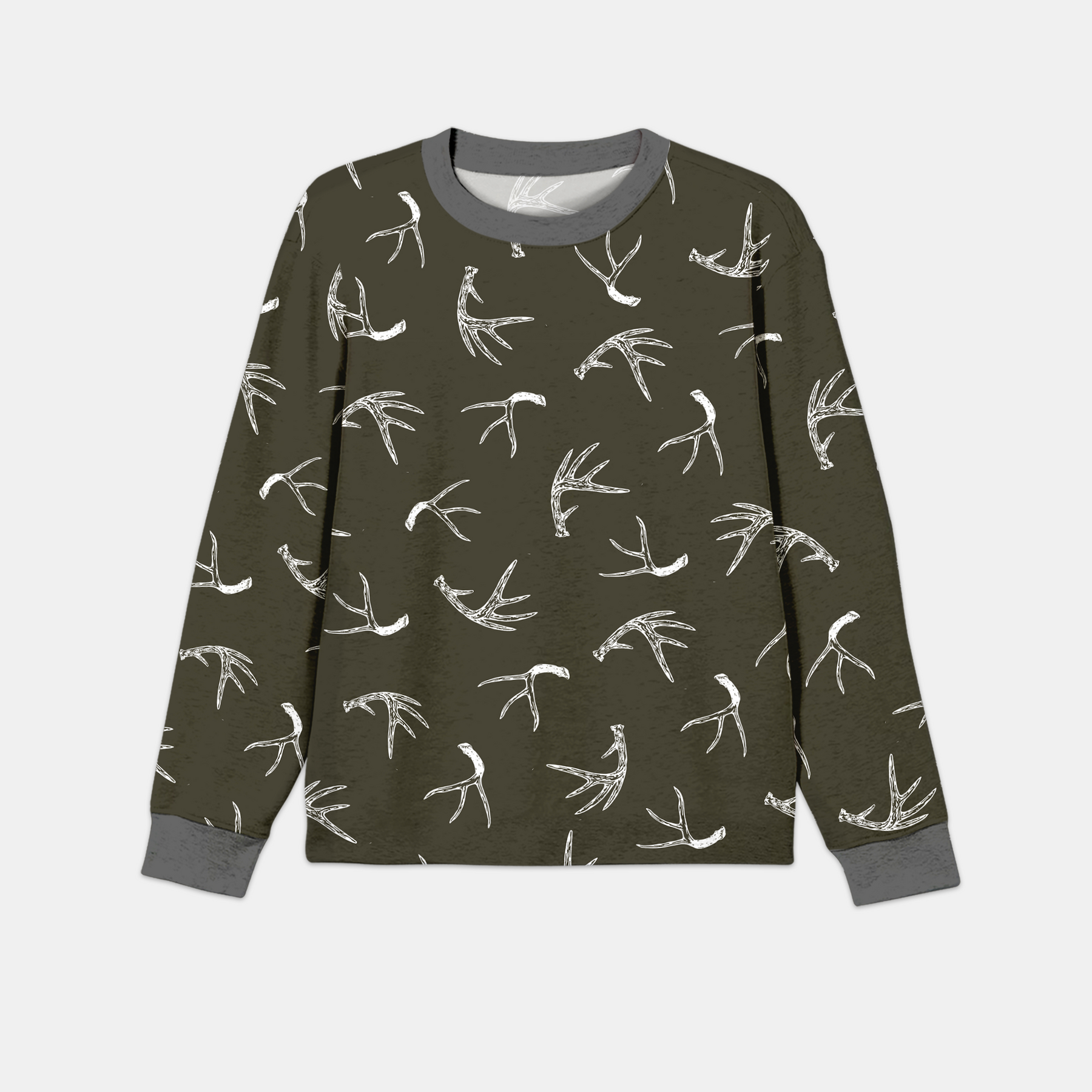This artwork on the product features a hand-drawn antler pattern inspired by classic hunting and woodland heritage. With earthy, muted tones and a rustic feel, the artwork captures an outdoorsy, adventure-ready vibe—perfect for little ones growing up with a love for nature and the wild.