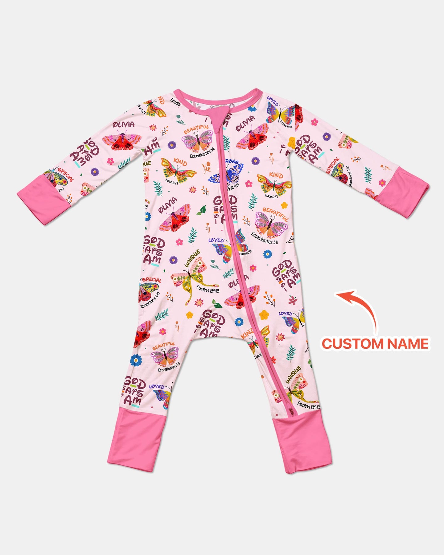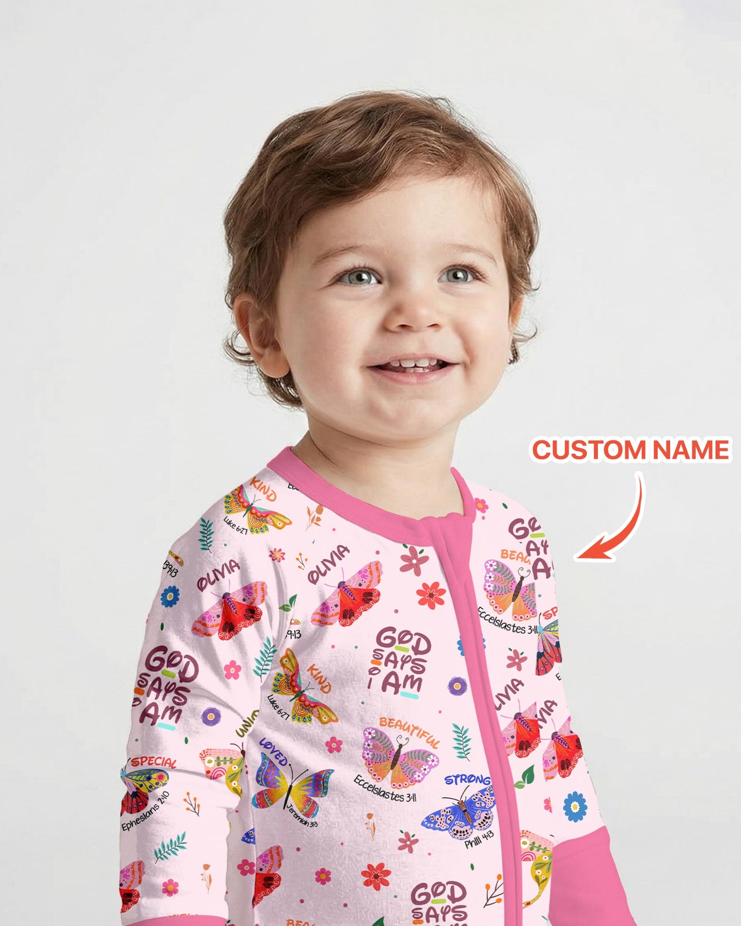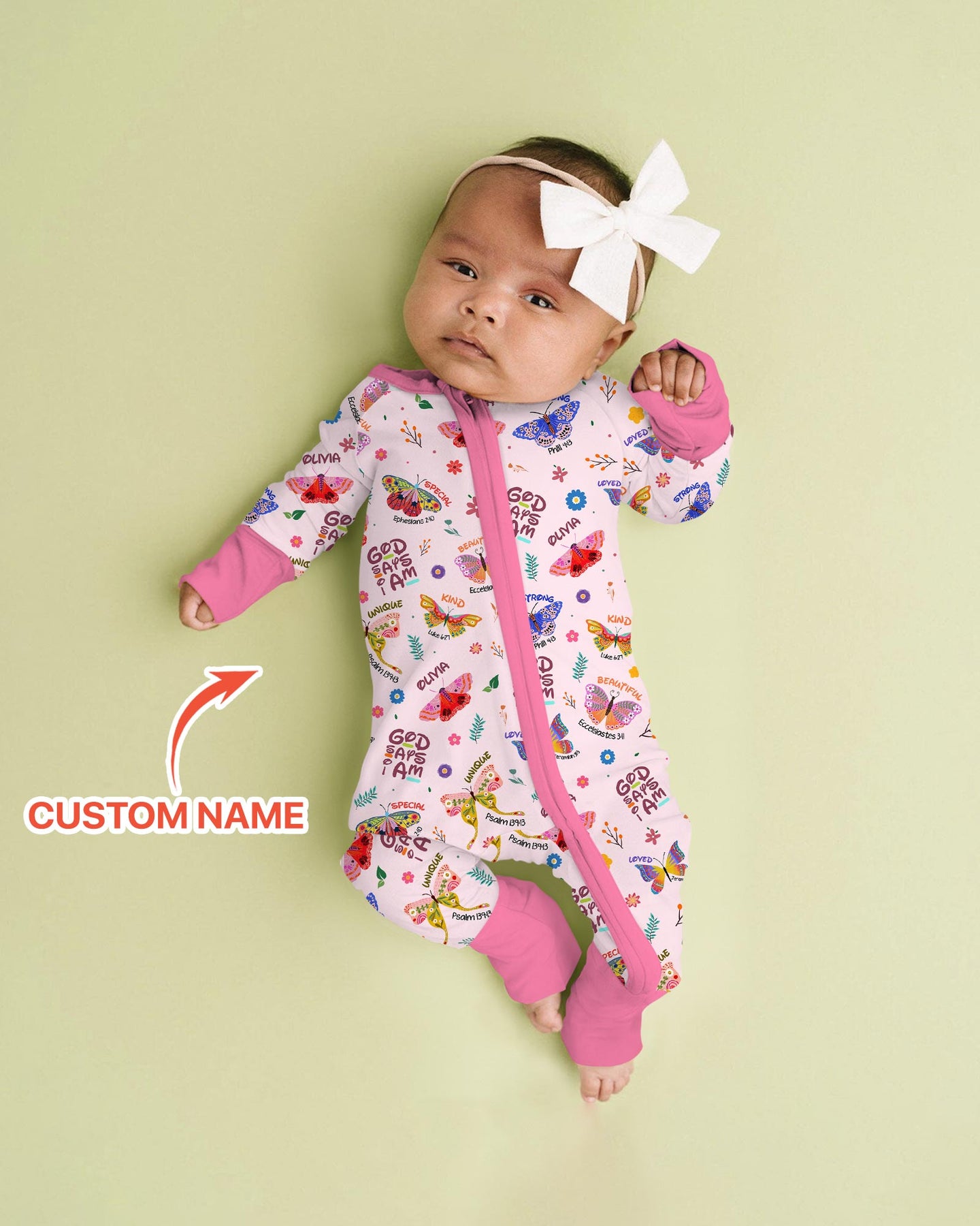 Wrap your little one in comfort and encouragement with our “God Says I Am Butterfly” bamboo zippies and pajamas. Made from ultra-soft, breathable bamboo fabric, these PJs keep babies cozy in every season. The charming butterfly print features uplifting Bible verses and positive affirmations, reminding your child of their unique worth. Gentle on sensitive skin, stretchy for all-night comfort, and beautifully vibrant.