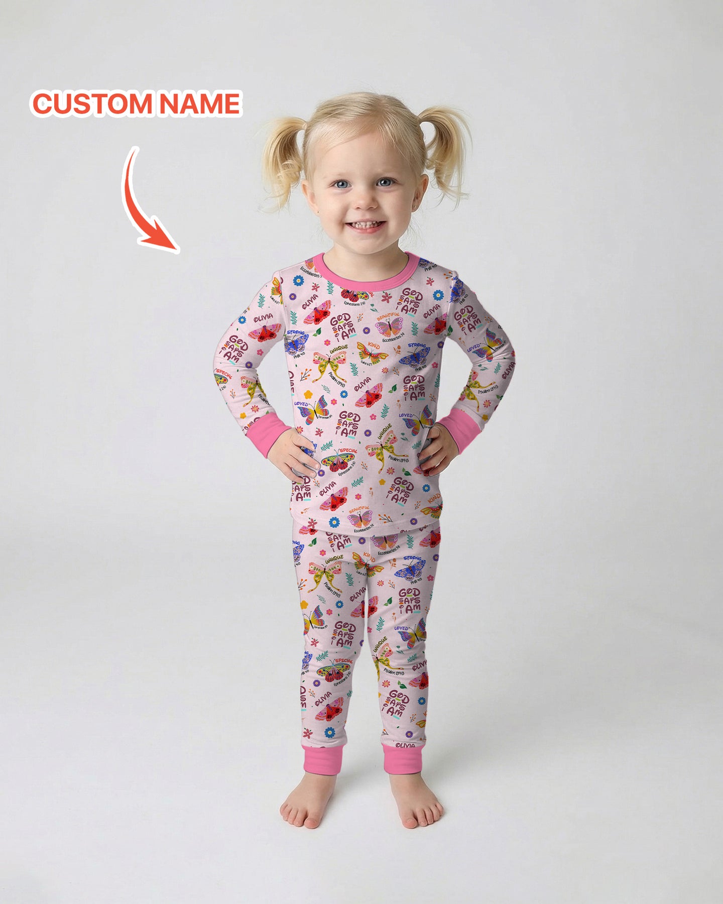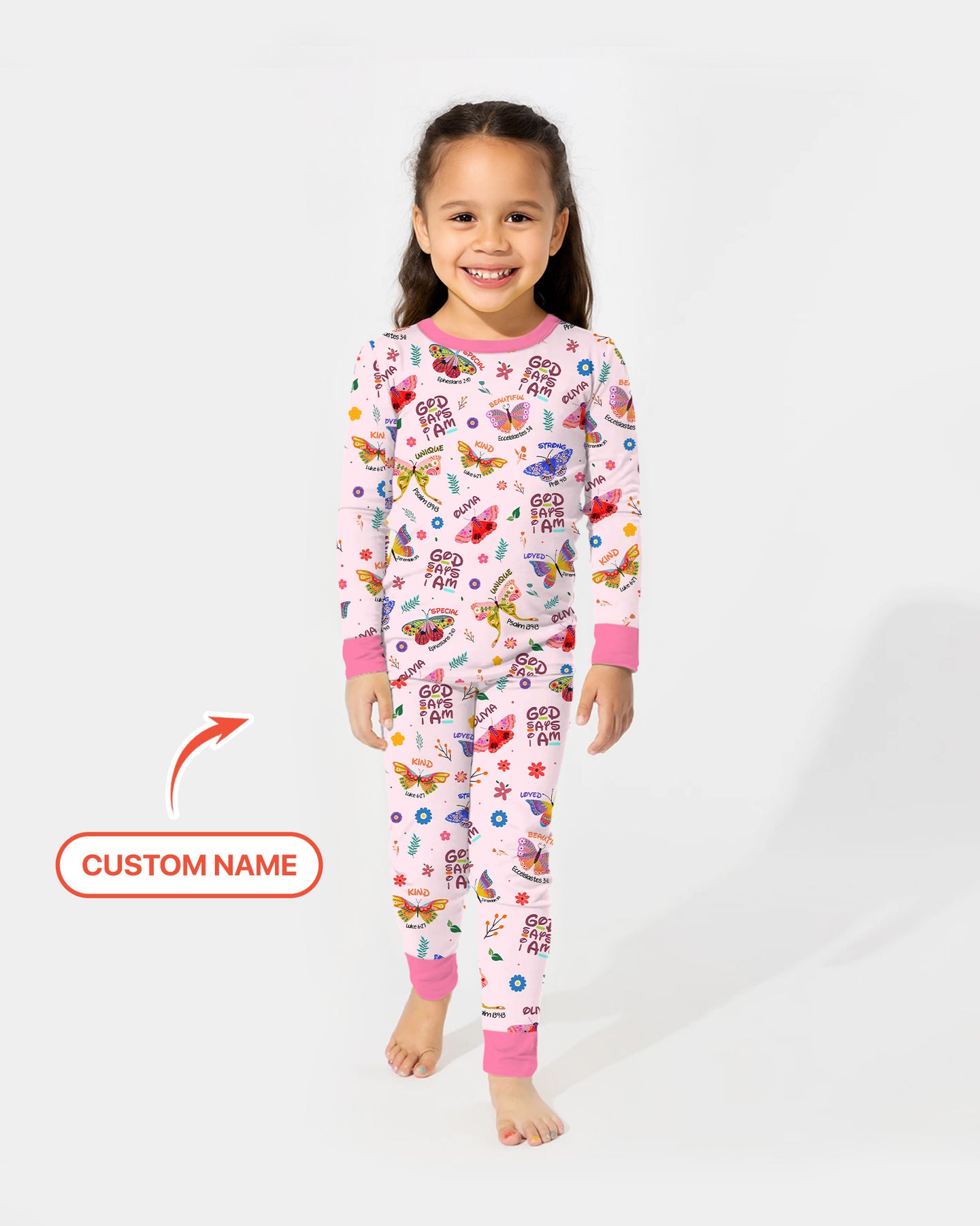 Custom Name God says I am Butterfly Two Piece Long Sleeve Pajama Set