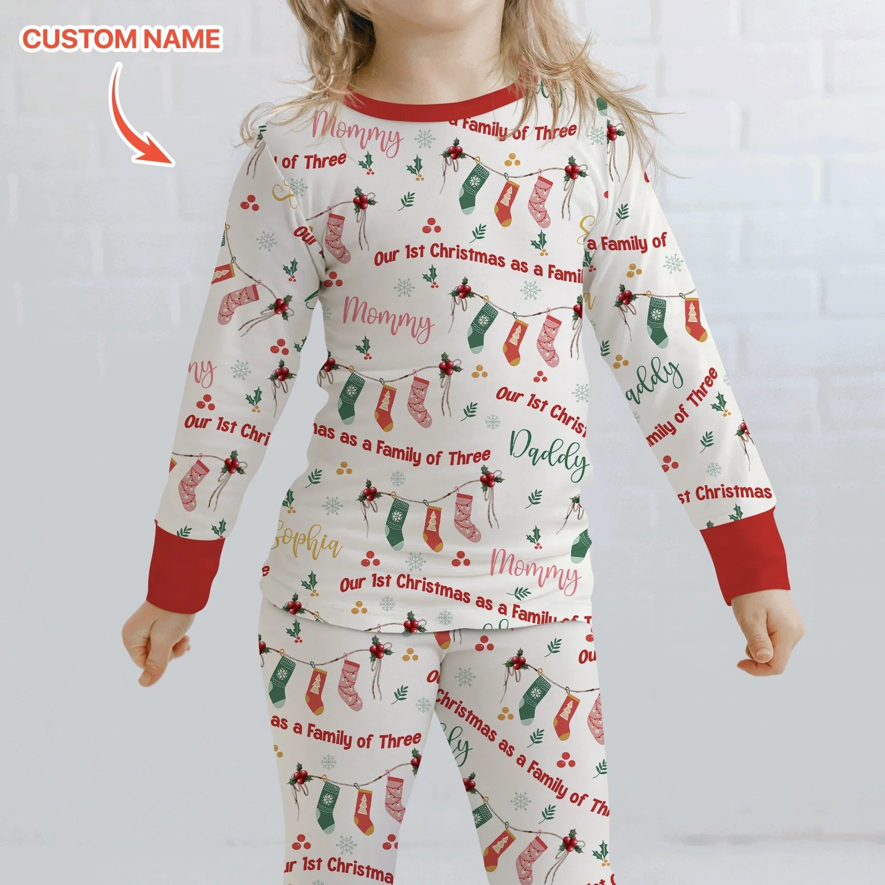 Custom Name Family Christmas Stockings Two Piece Long Sleeve Pajama Set