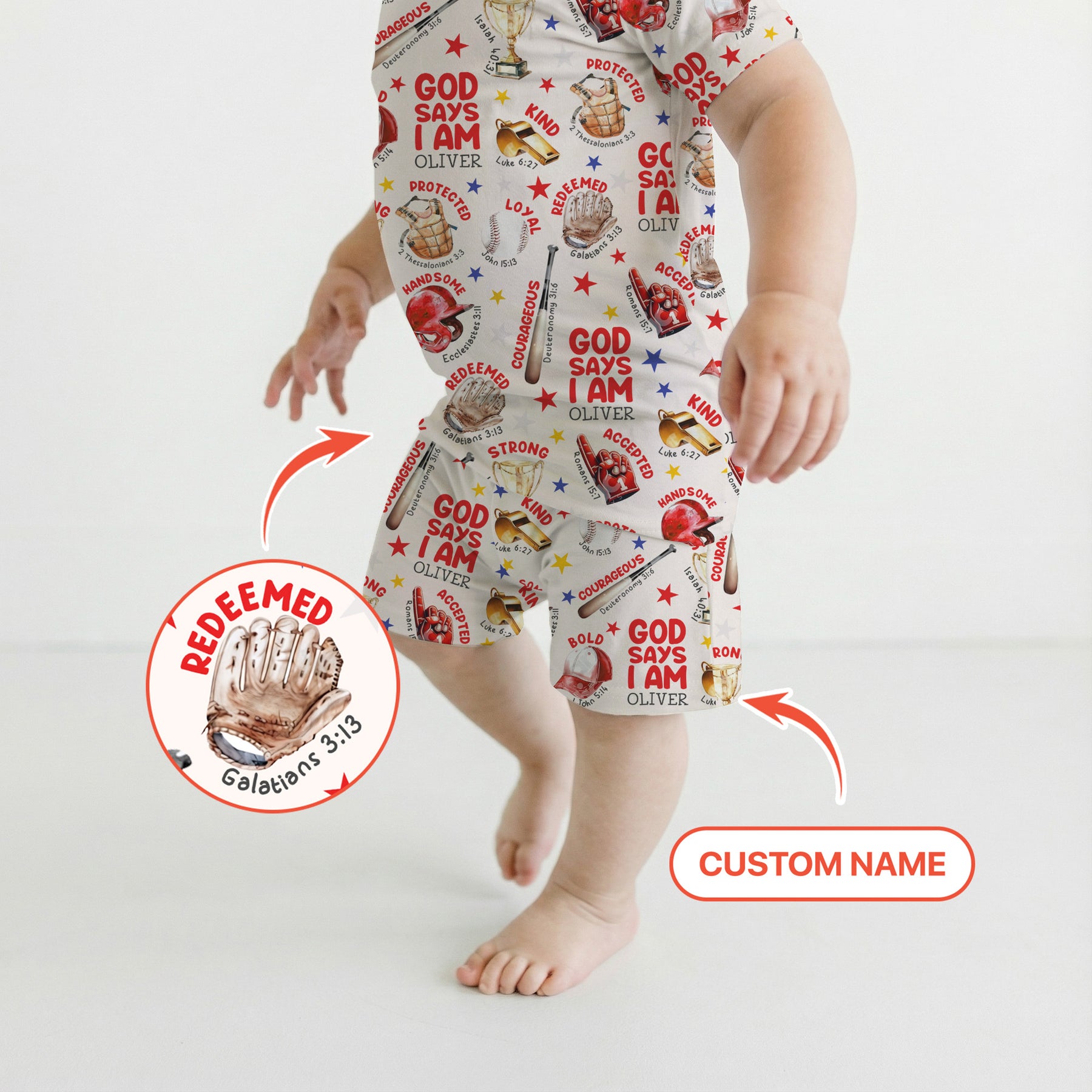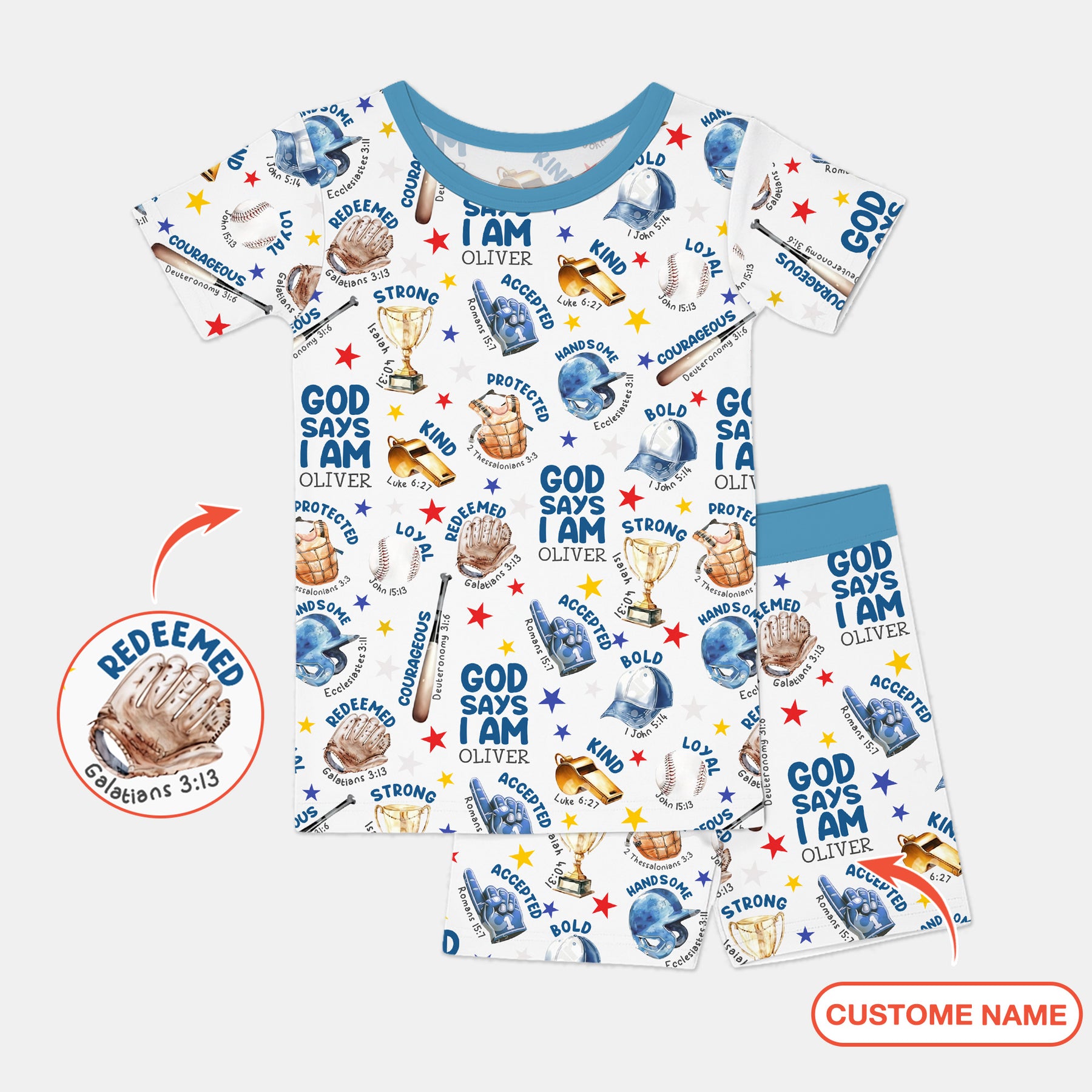 Baseball God Says I Am Custom Name Two Piece Short Sleeve Shorts Pajama Set