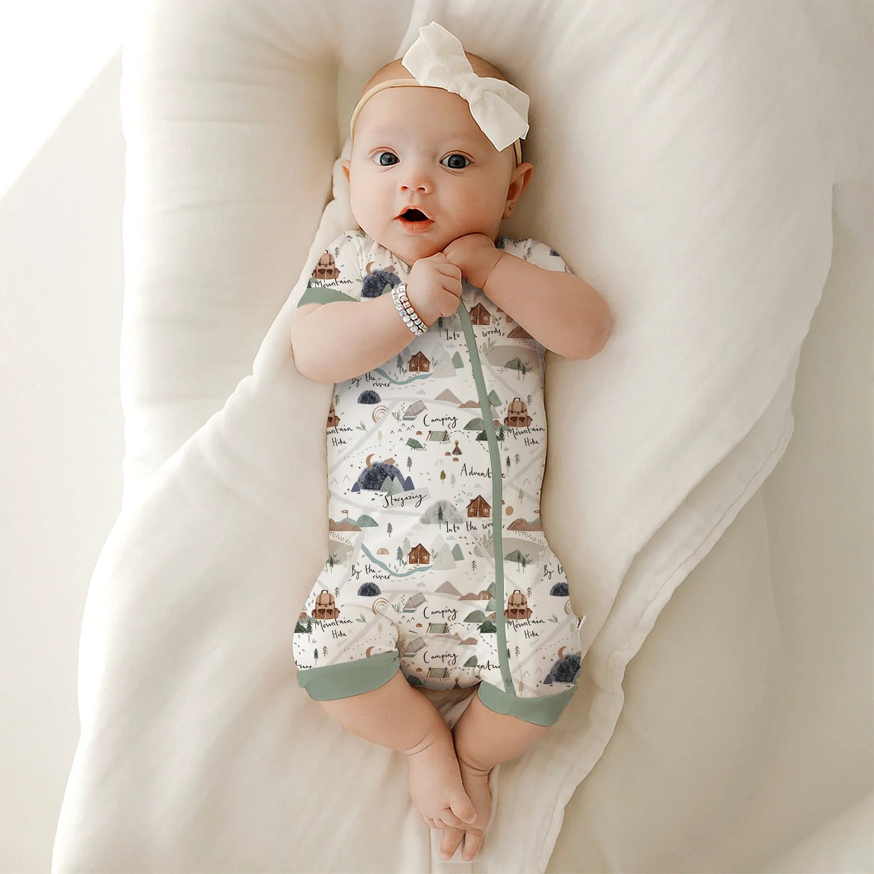 Embark on bedtime adventures with our “Camping Route Map” bamboo zippies and pajamas. Crafted from silky-soft, breathable bamboo fabric, these PJs keep little explorers cozy year-round. The charming map design—featuring tents, cabins, mountains, and stargazing spots—sparks imagination and brings the joy of the outdoors to bedtime. Gentle on sensitive skin, stretchy for easy movement, and perfect for adventure-loving kids.