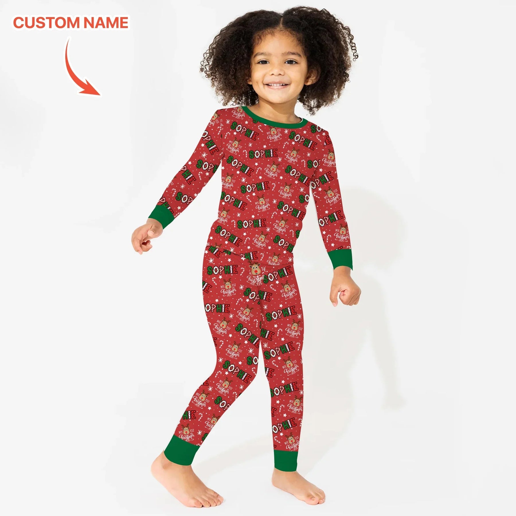 Celebrate the season in style with our Custom Name "My First Christmas 2025". Made from buttery-soft bamboo fabric, these festive PJs are breathable, cozy, and gentle on sensitive skin. Add your child’s name for a magical holiday keepsake.