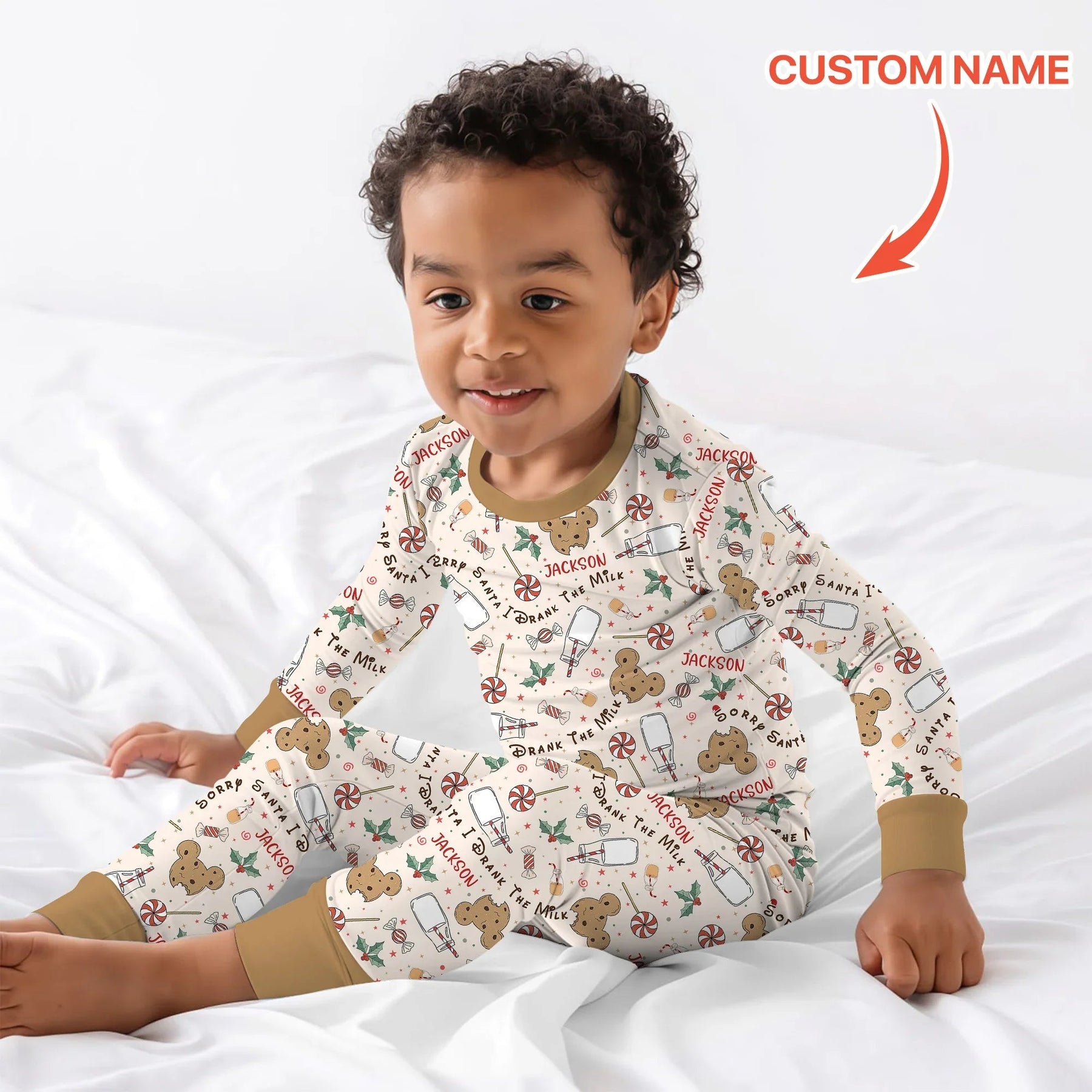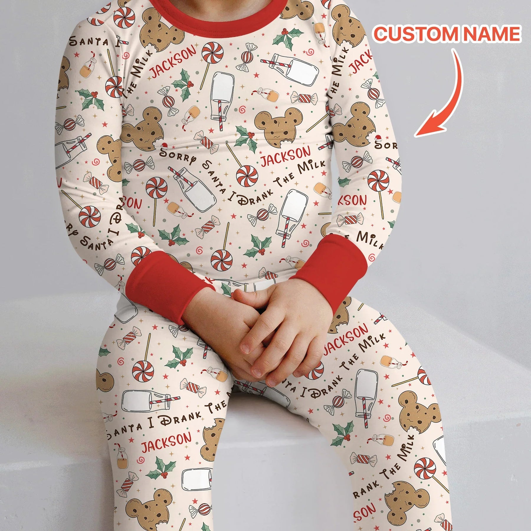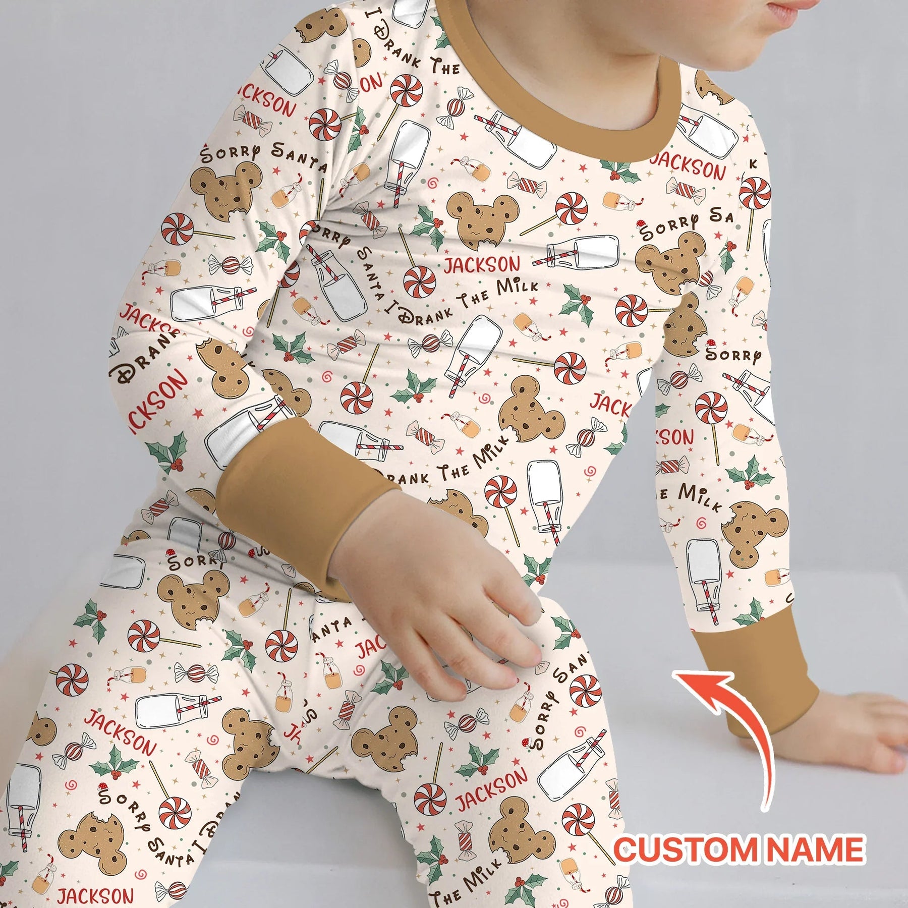Custom Name Sorry Santa I Drank The Milk Two Piece Long Sleeve Pajama Set