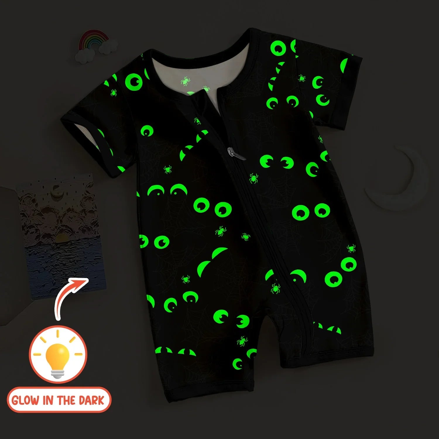 Glow In The Dark Creepy Spiderweb Shorty Zippy