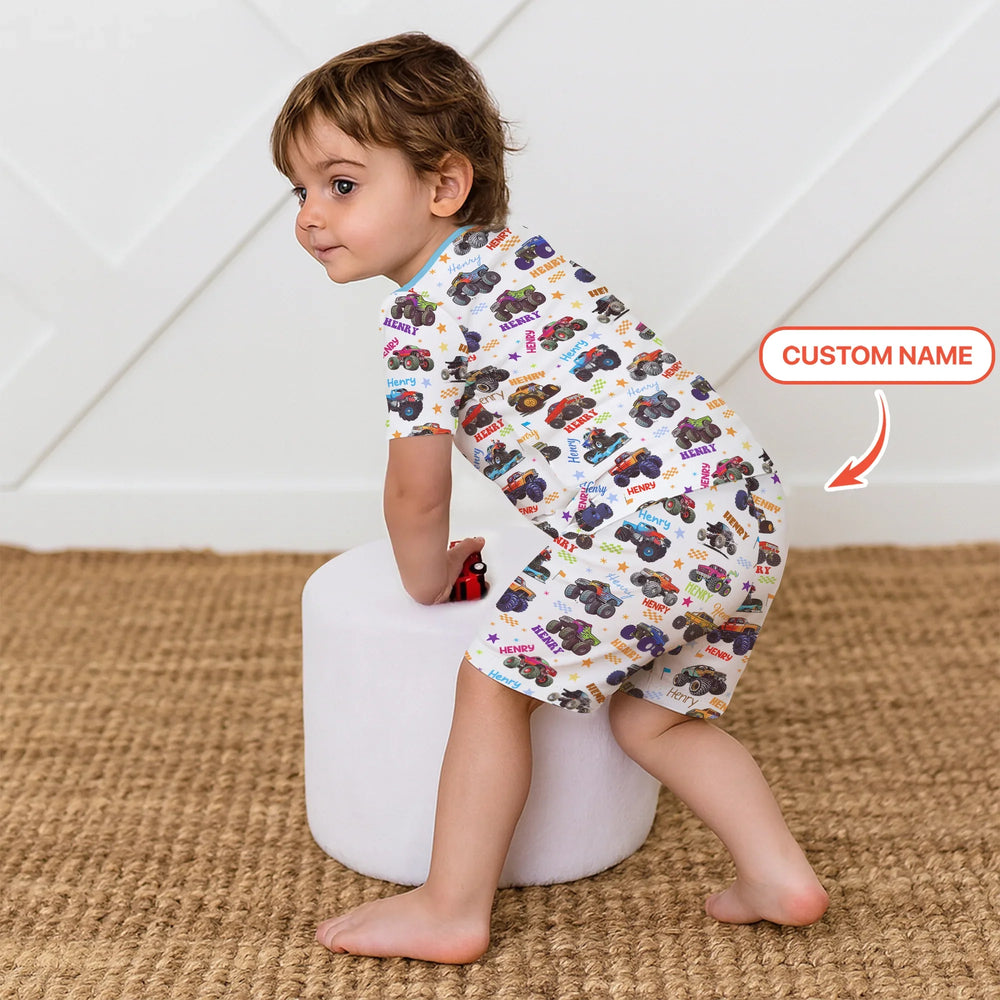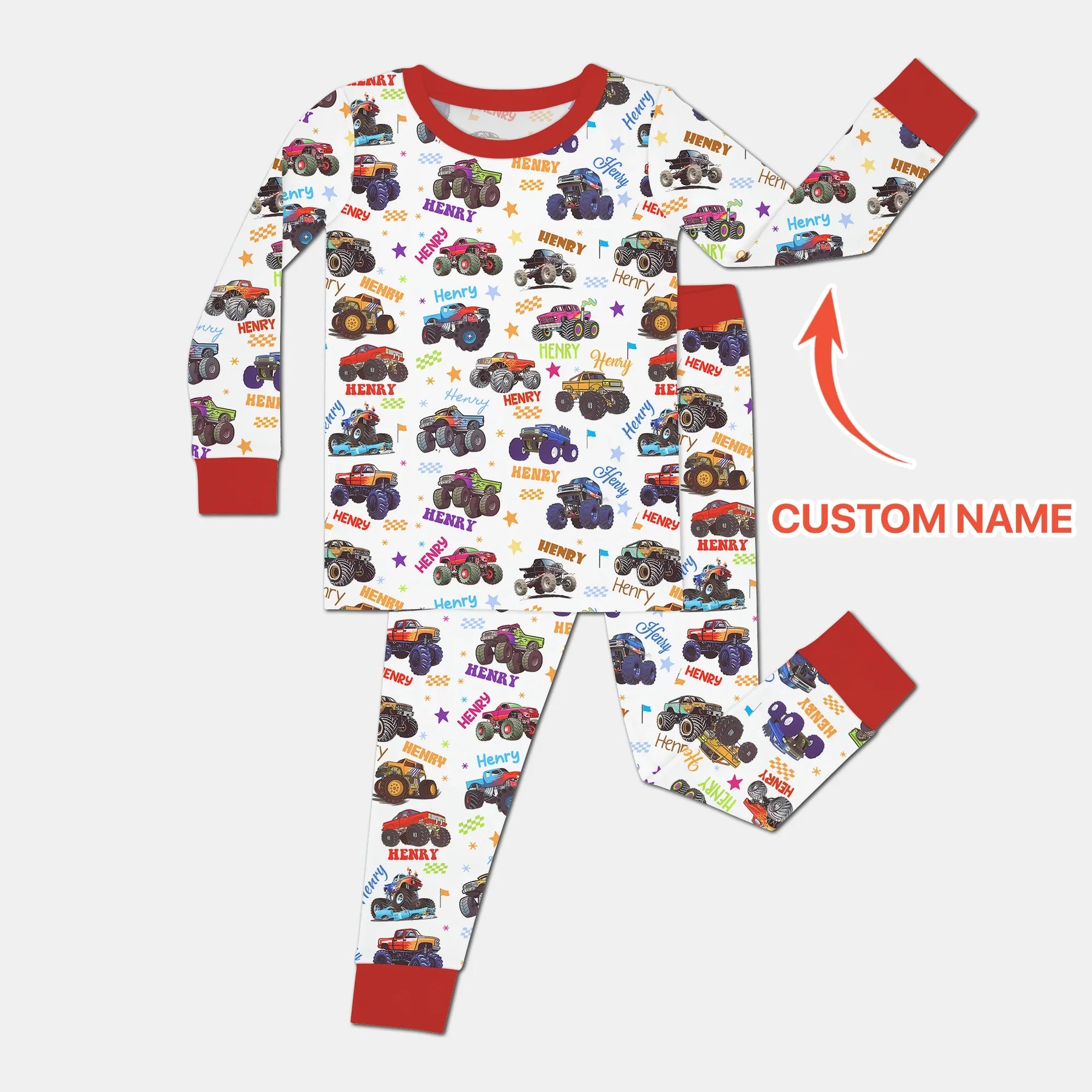 Monster Truck Custom Name Two Piece Long Sleeve Pajama Set