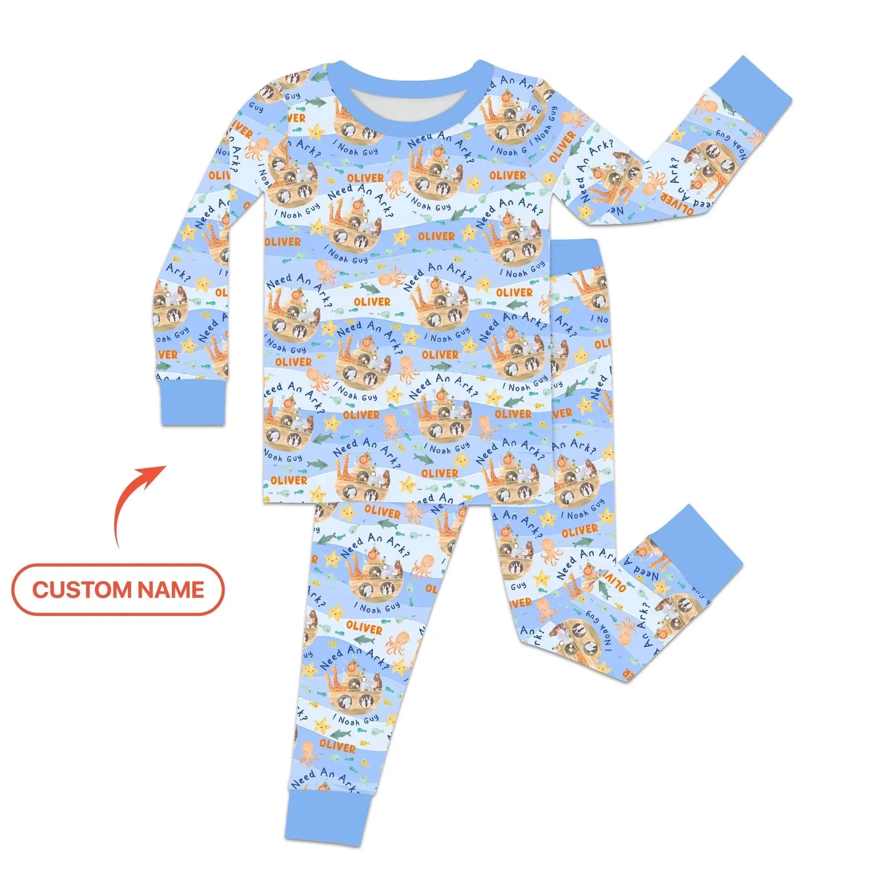 Noah’s Ark Custom Name Boy Two Piece Long Sleeve Pajama Set