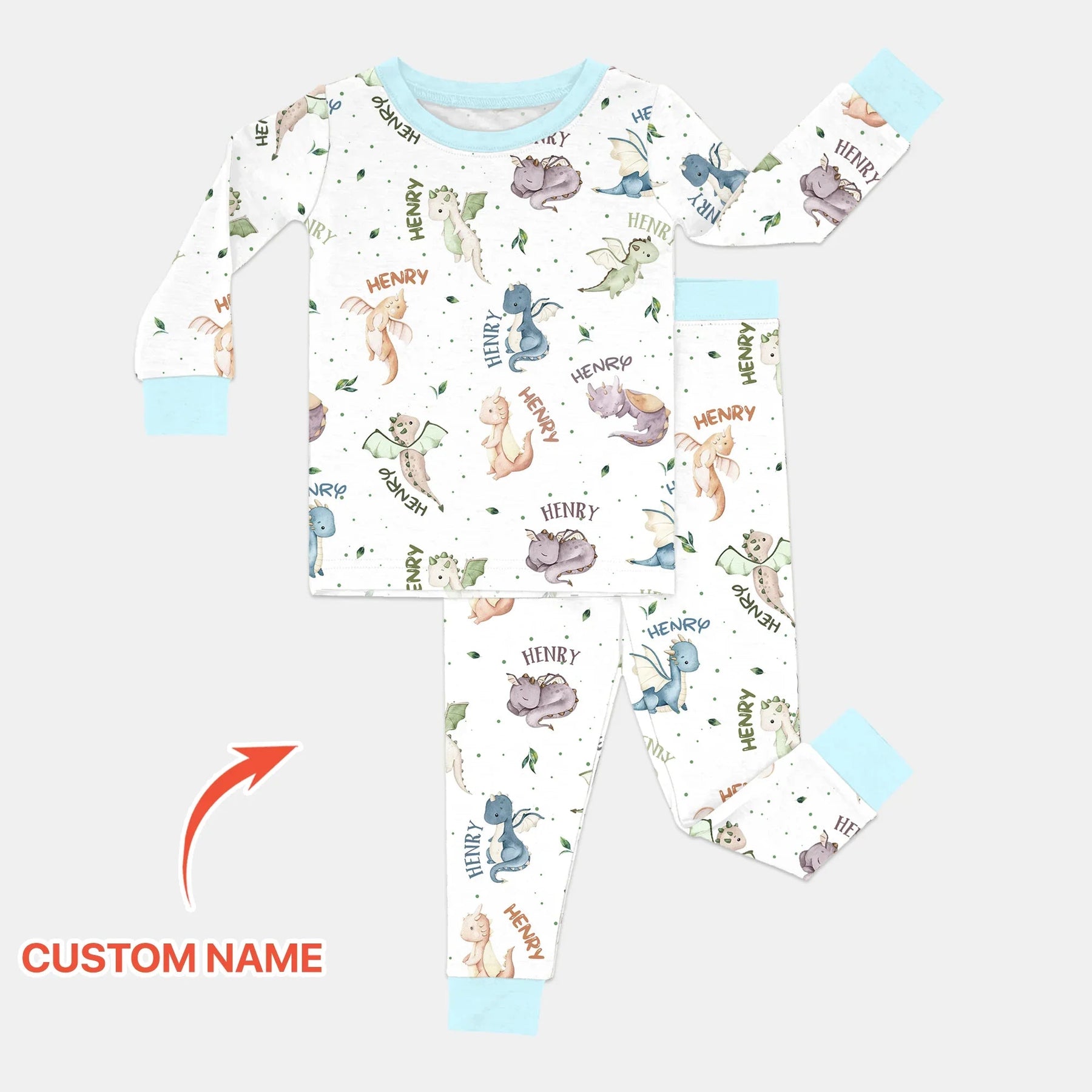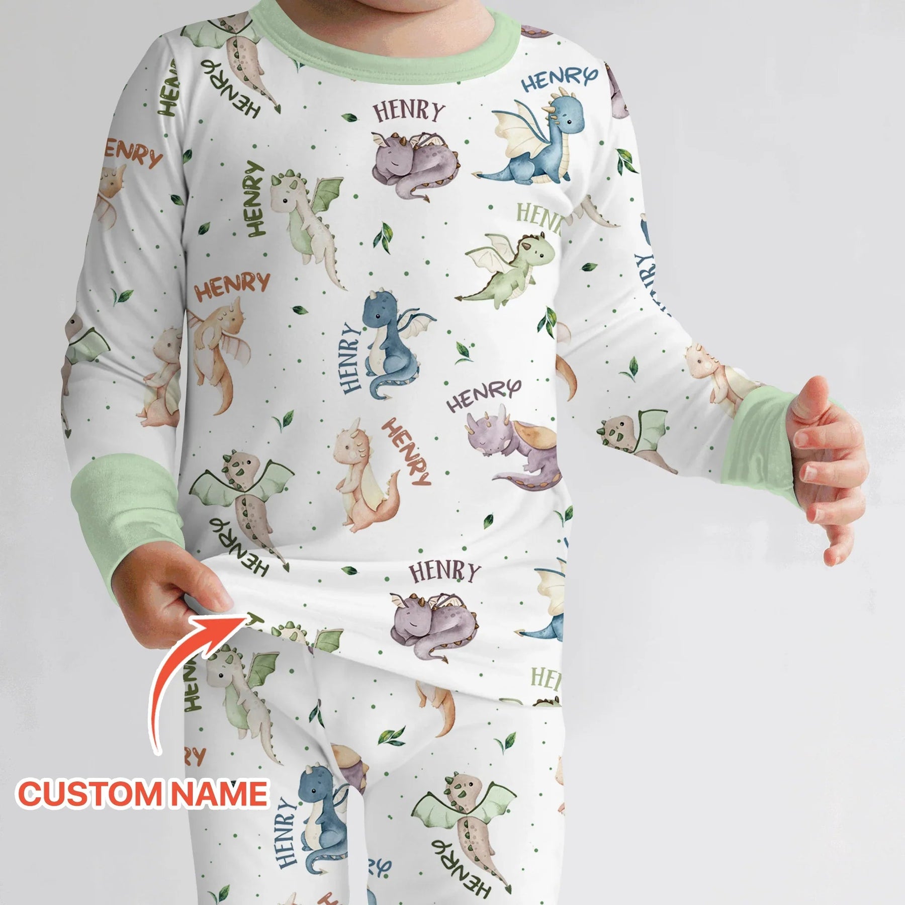 Sweet Baby Dragons Custom Name Two Piece Long Sleeve Pajama Set