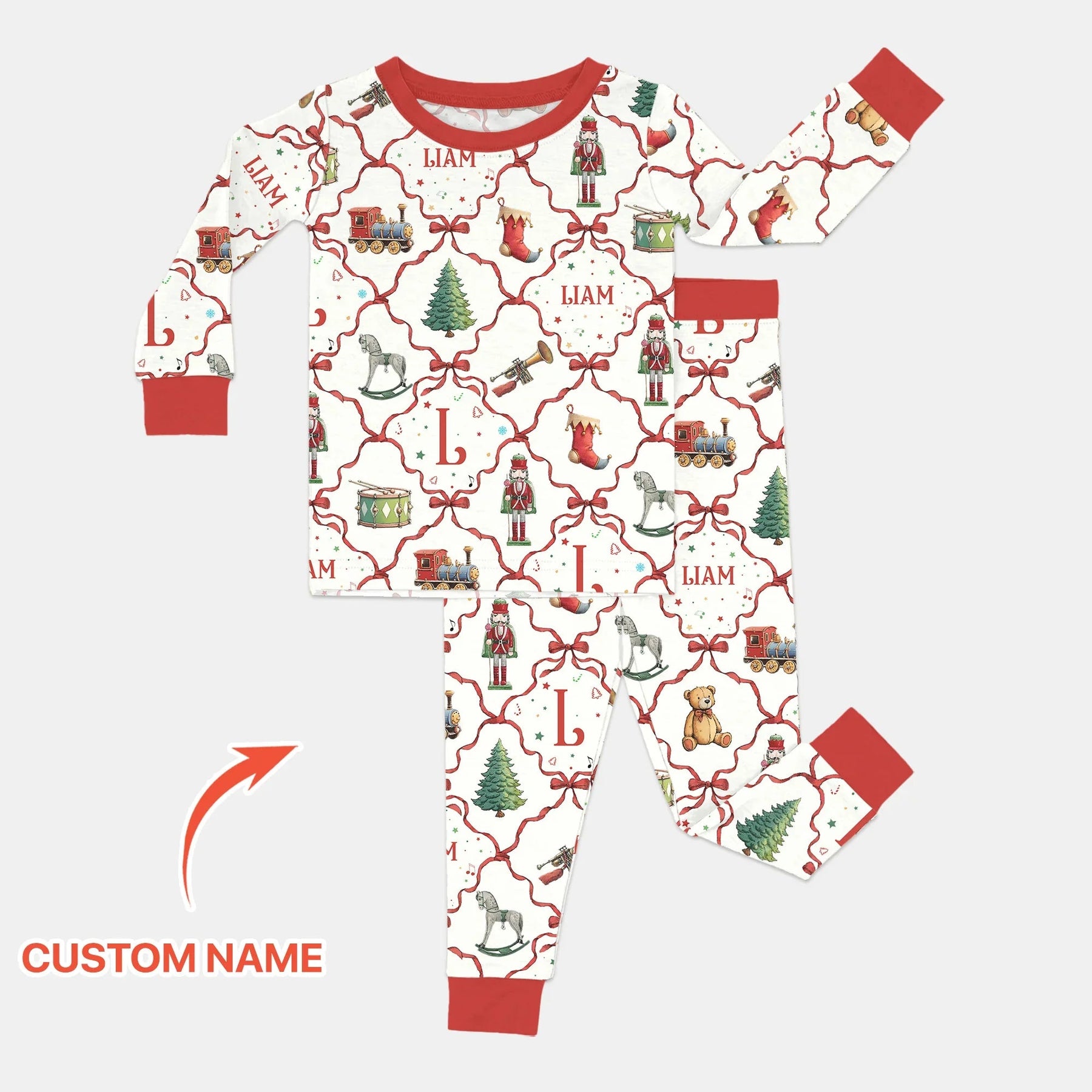 Vintage Christmas Toy Custom Name Boy Two Piece Long Sleeve Pajama Set