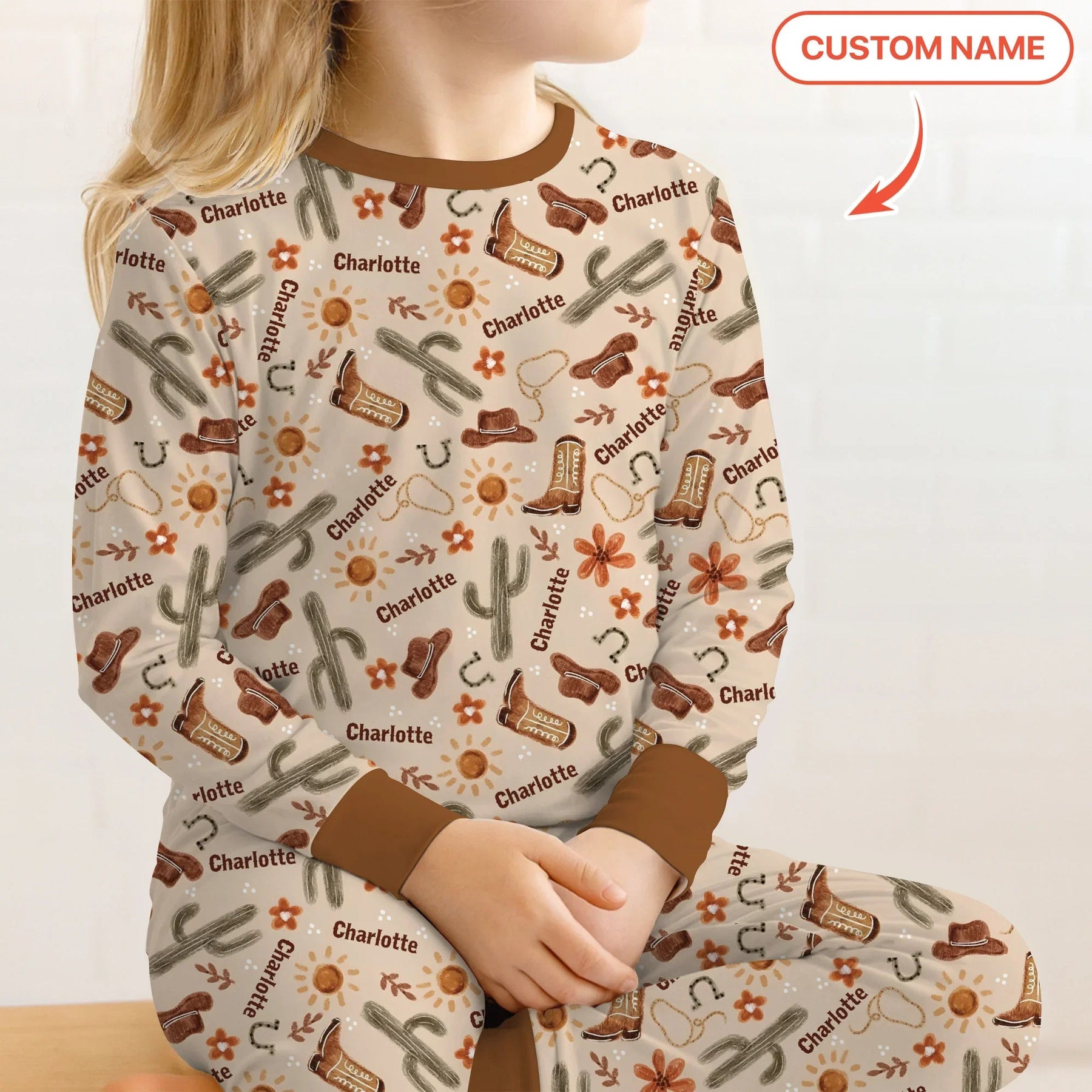 Custom Name Western Cowboy Stuff Two Piece Long Sleeve Pajama Set