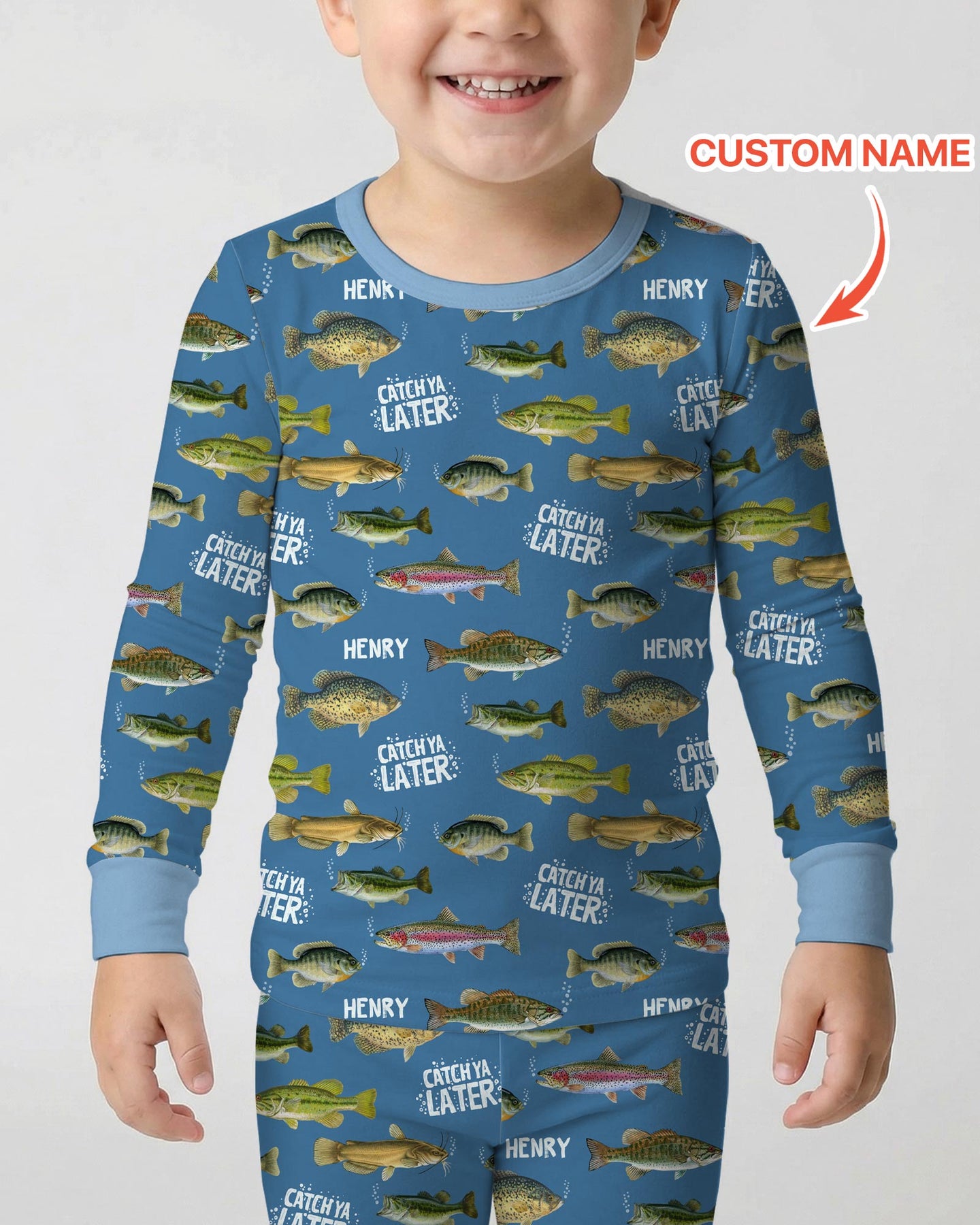 Make bedtime extra special with the Catch Ya Later – Matching Daddy & Me Collection, designed for little anglers and their favorite fishing buddy. Featuring a playful all-over fish print and the fun phrase “Catch Ya Later”, this collection celebrates the joy of bonding, laughter, and shared adventures—on the water or at home.