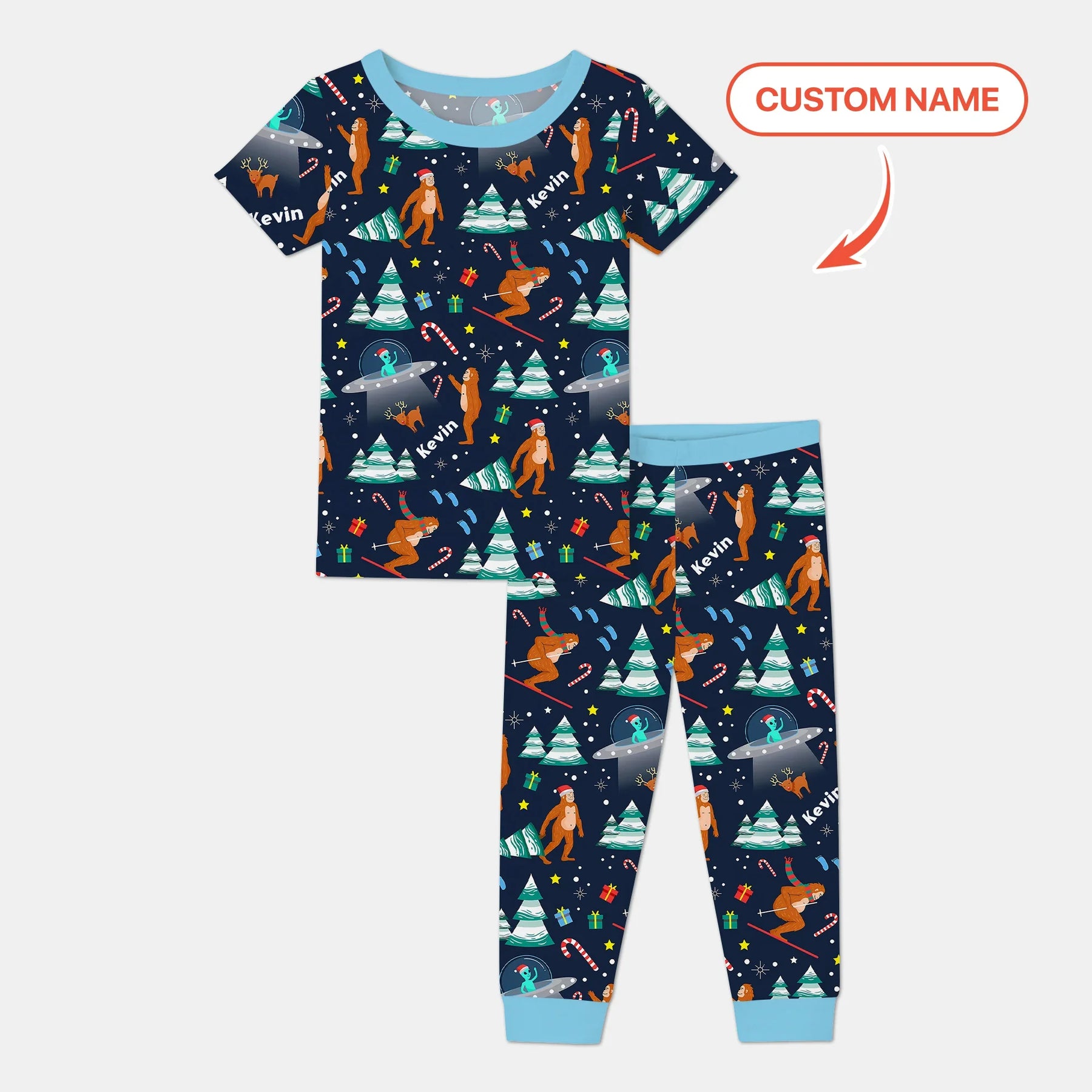 Custom Christmas Bigfoot Two Piece Short Sleeve Pajama Set