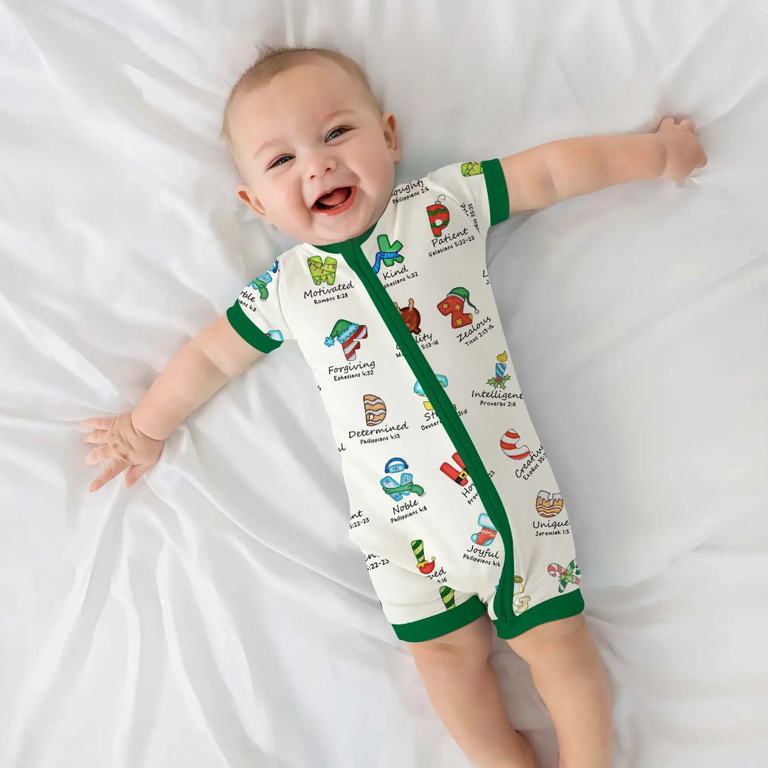 Each letter of the alphabet showcases a positive affirmation paired with a Bible truth — from A for Amazing to Z for Zealous — reminding your child of their God-given identity every time they wear it. The playful hand-drawn letters and bright colors make bedtime feel fun and full of purpose.