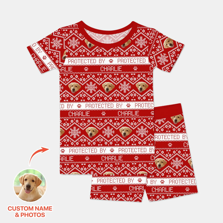 Custom Dog Photo Fair Isle Christmas Two Piece Short Sleeve Shorts Pajama Set , Custom Dog Photo Fair Isle Christmas Two Piece Short Sleeve Shorts Pajama Set - 12-18M