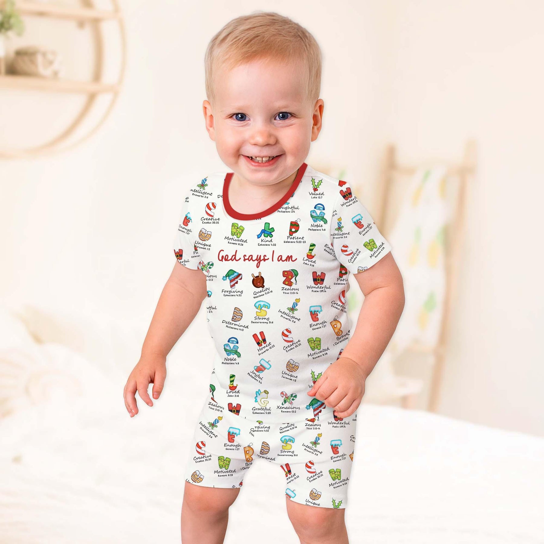 Christmas God Say I Am Alphabet Two Piece Short Sleeve Pajama Set