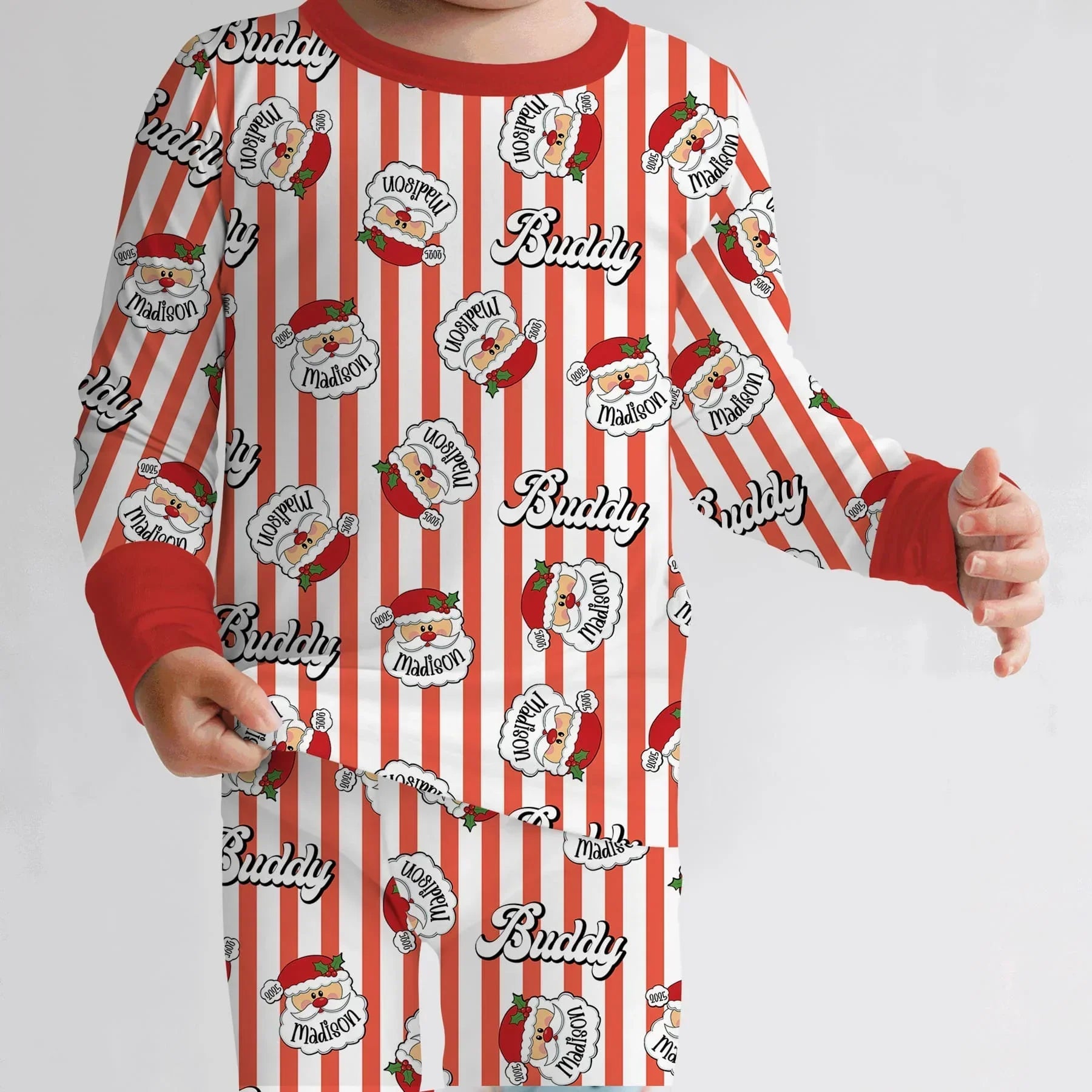 Christmas Santa Claus Custom Name Buddy Two Piece Long Sleeve Pajama Set