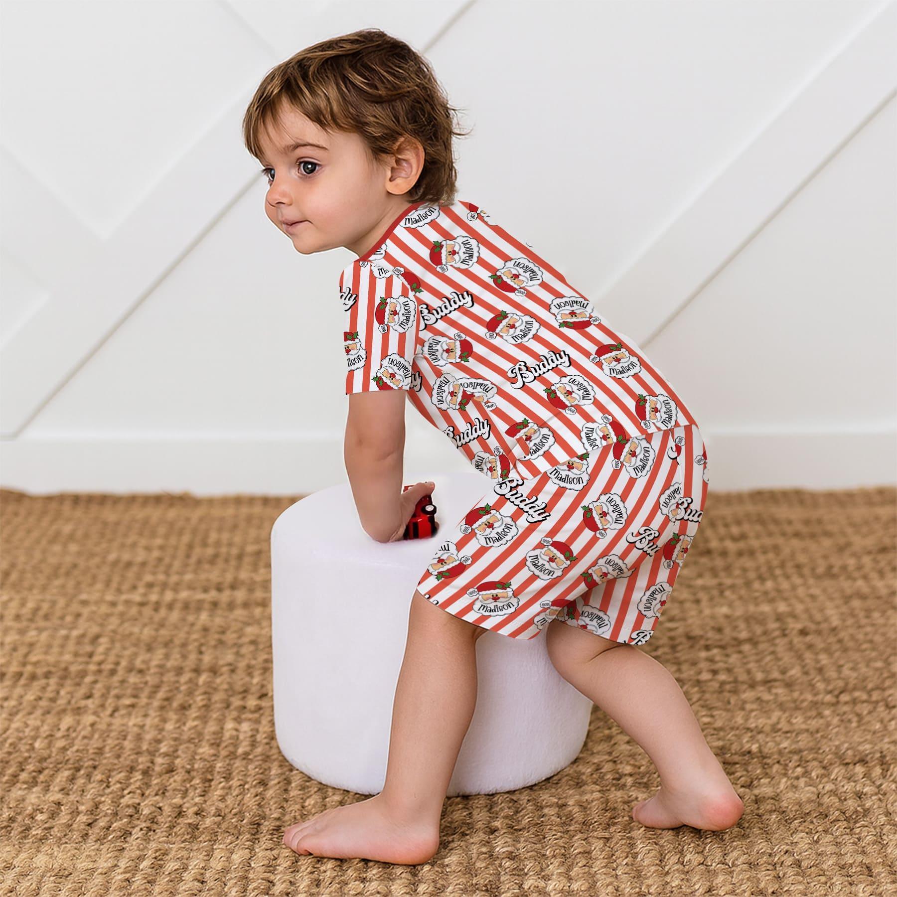 Christmas Santa Claus Custom Name Buddy Two Piece Short Sleeve Shorts Pajama Set
