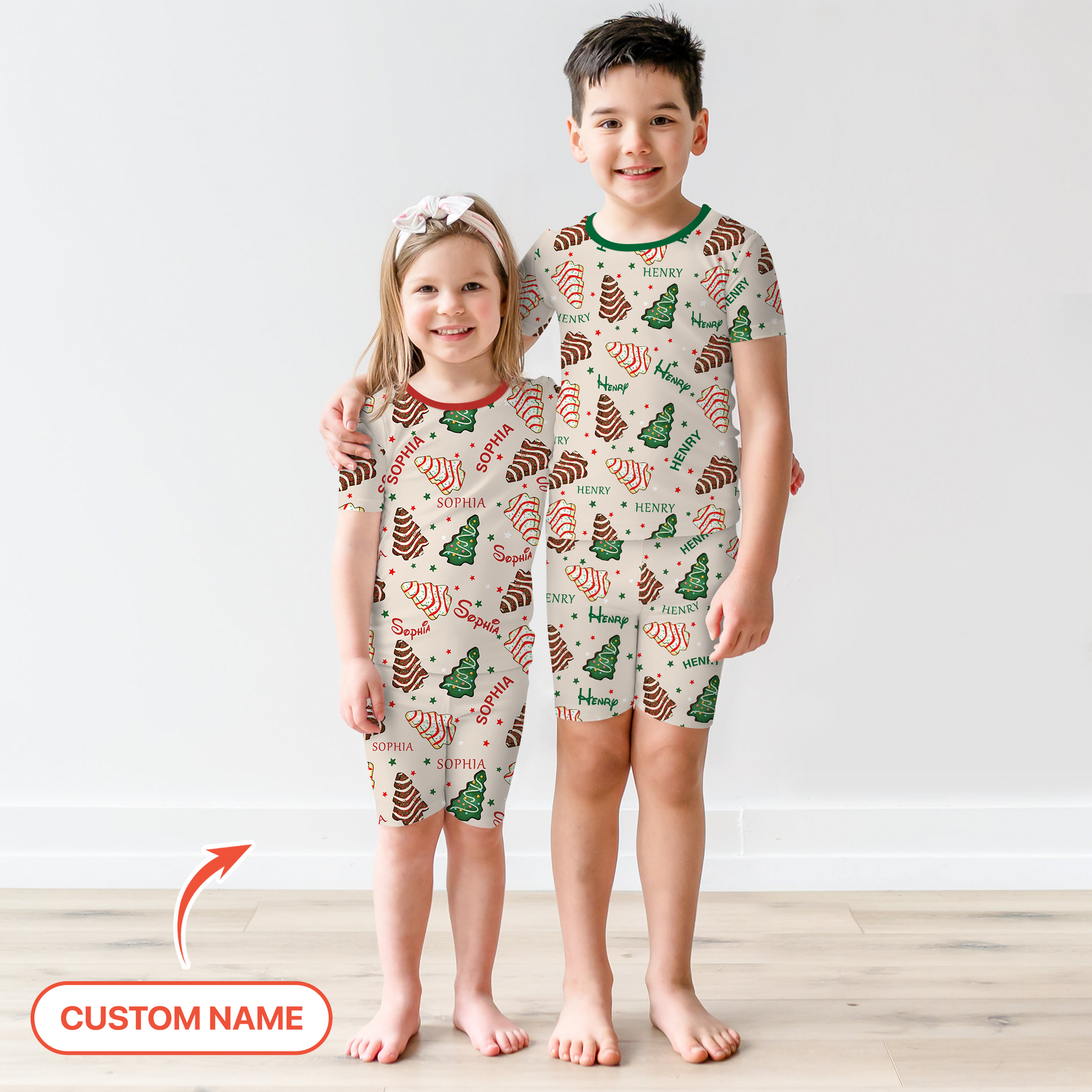 Sweet dreams are made of Christmas magic with our Christmas Tree Cake Custom Name. Inspired by the festive charm of holiday tree cakes, this set is sprinkled with delightful red, green, and chocolate tones that bring the season to life. Crafted from buttery-soft, breathable fabric, it keeps little ones cozy through winter nights and joyful holiday mornings. Add your child’s name for a personalized touch—making each pajama not just a bedtime essential, but also a keepsake full of Christmas cheer.