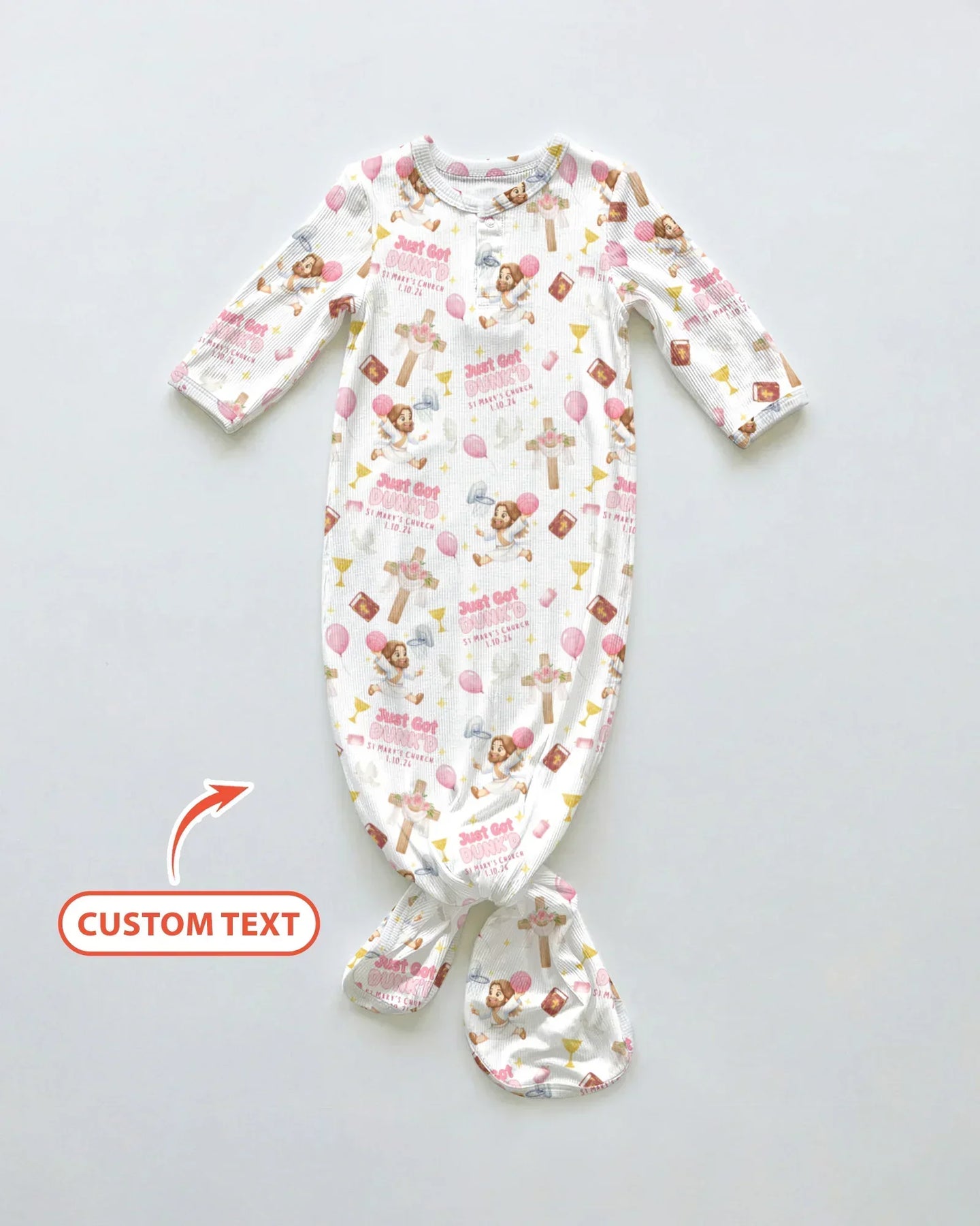 Custom Name Baptism Just Got Dunk'd Bamboo Knot Gown