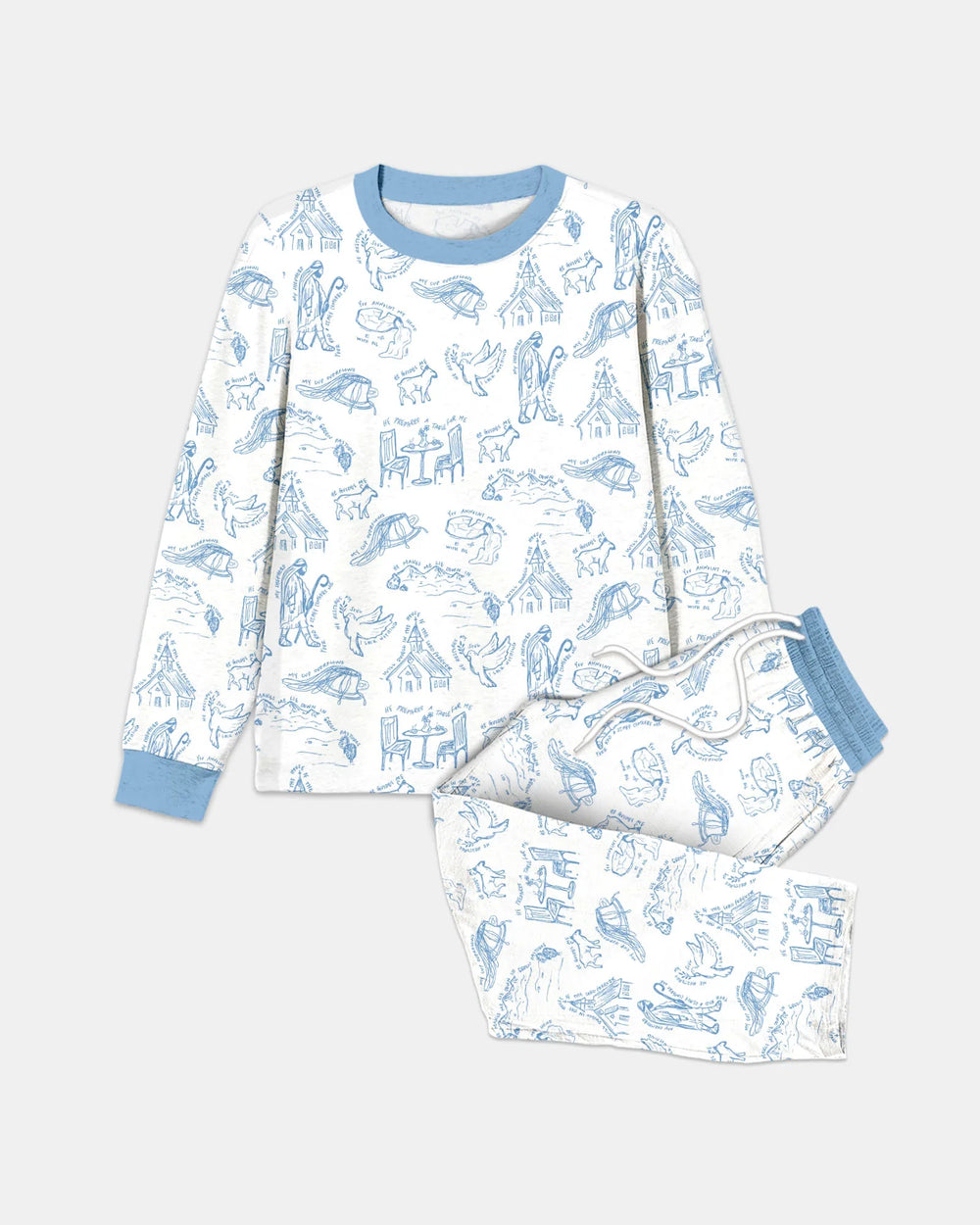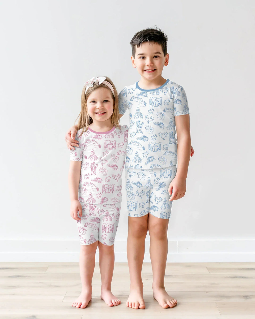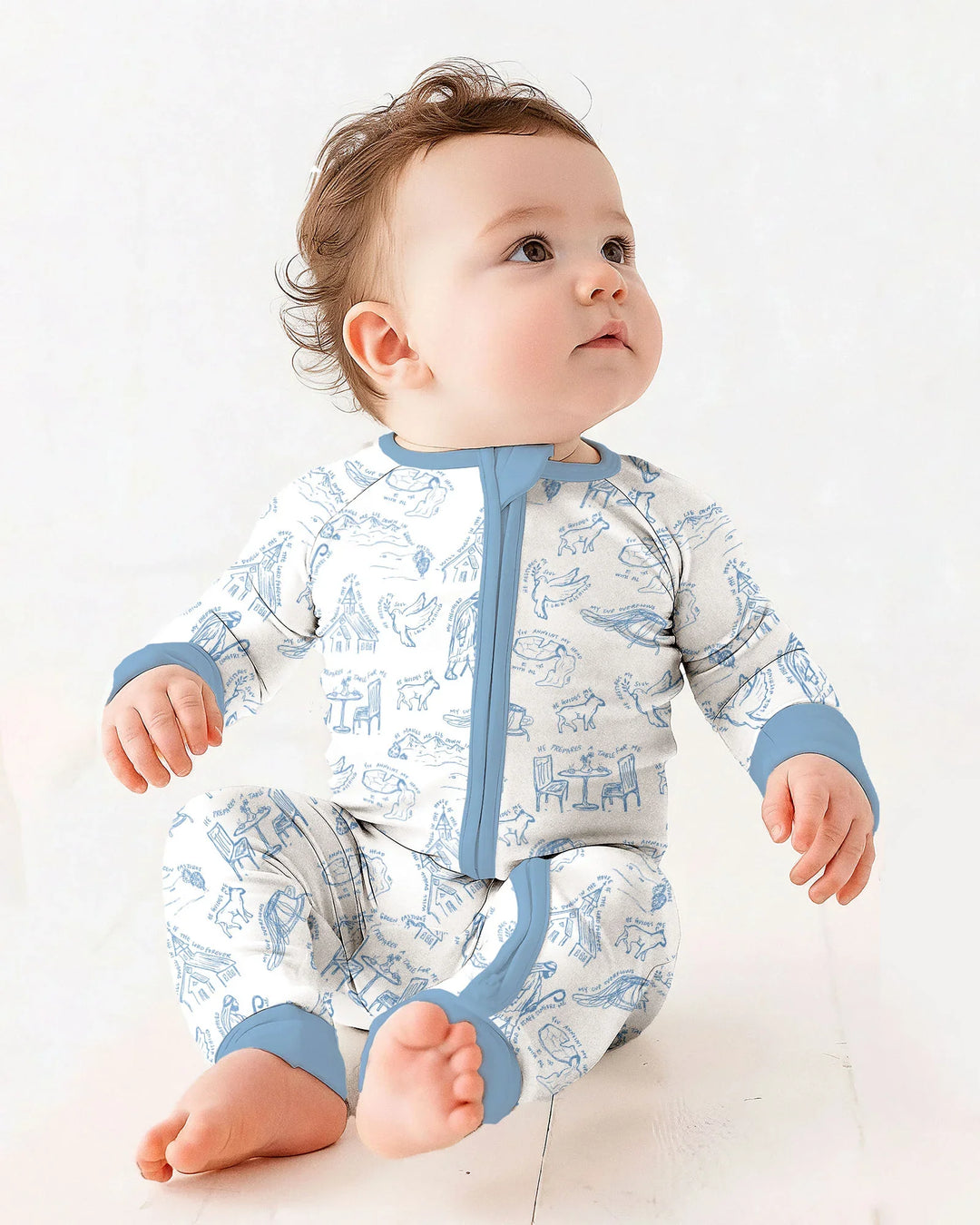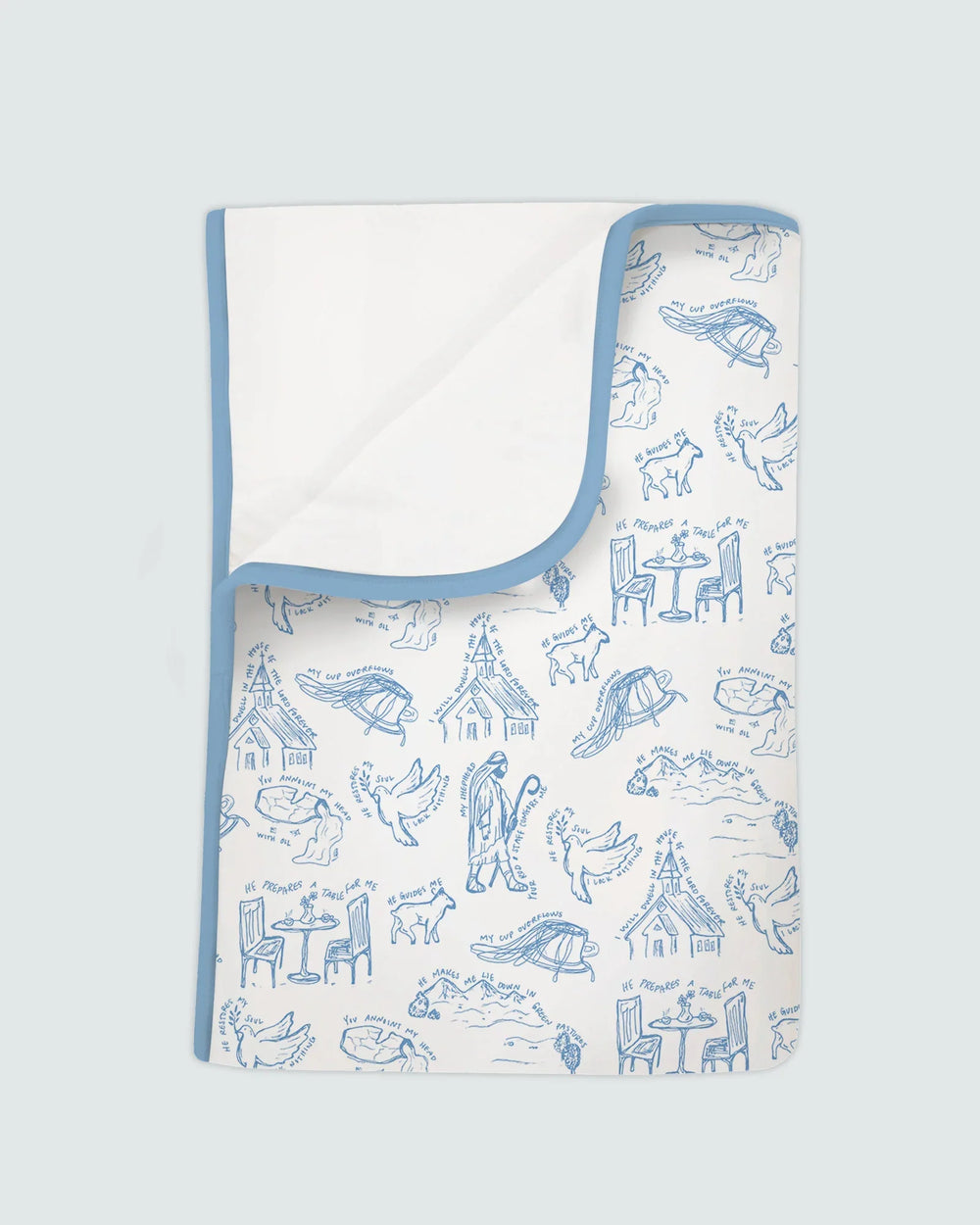 ✏️ Psalm 23 Sketch Bamboo Zippies & PJ Sets feature a soft, hand-drawn style inspired by the comforting words of Psalm 23. This delicate blue toile-like pattern includes peaceful scenes of the Good Shepherd, gentle sheep, quiet landscapes, and faith-filled moments that reflect “The Lord is my Shepherd.”