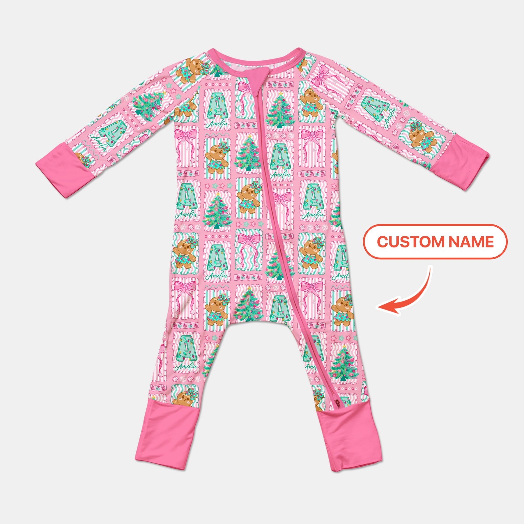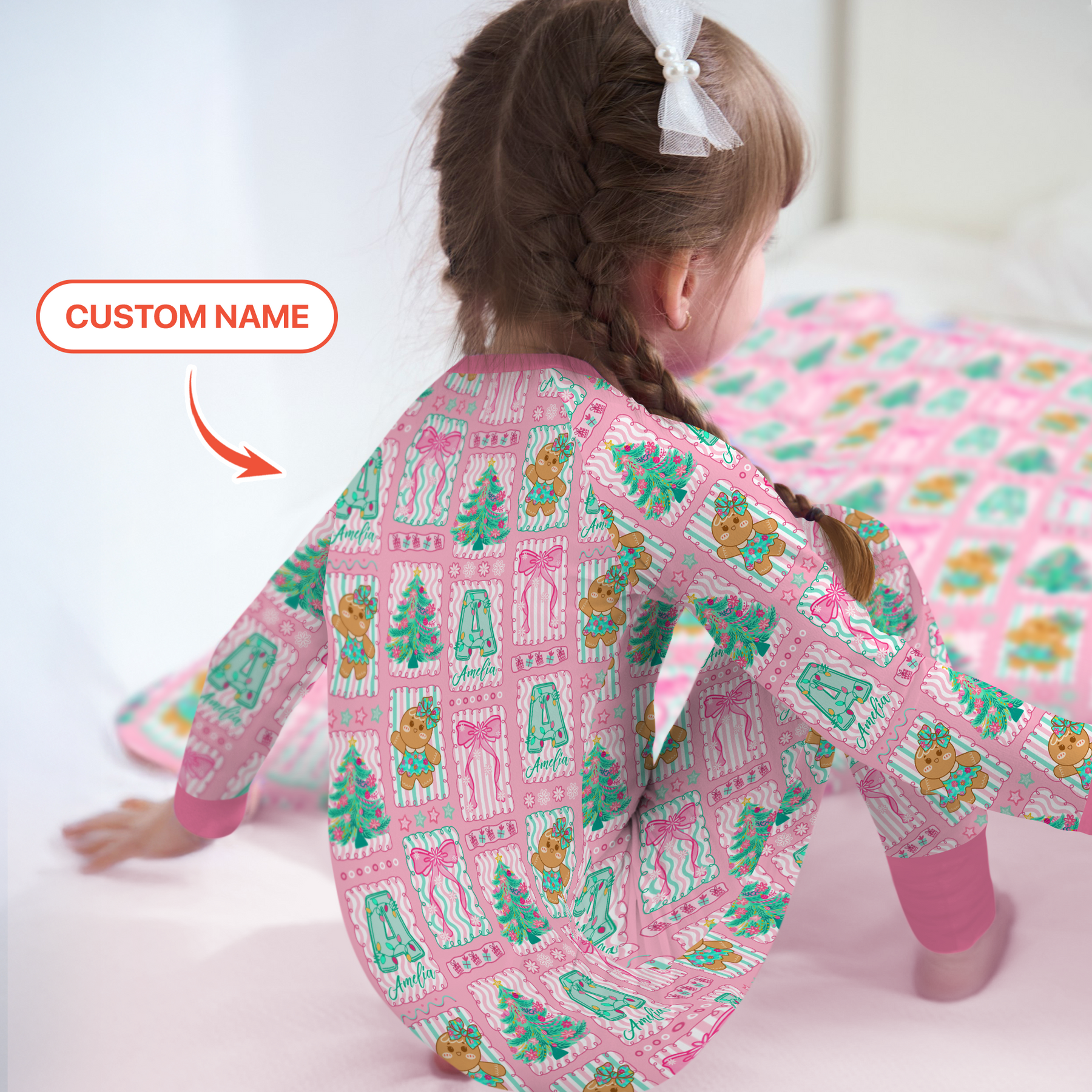 Celebrate the season in style with our Custom Name "Merry Pink Christmas". Made from buttery-soft bamboo fabric, these festive PJs are breathable, cozy, and gentle on sensitive skin. Add your child’s name for a magical holiday keepsake.
