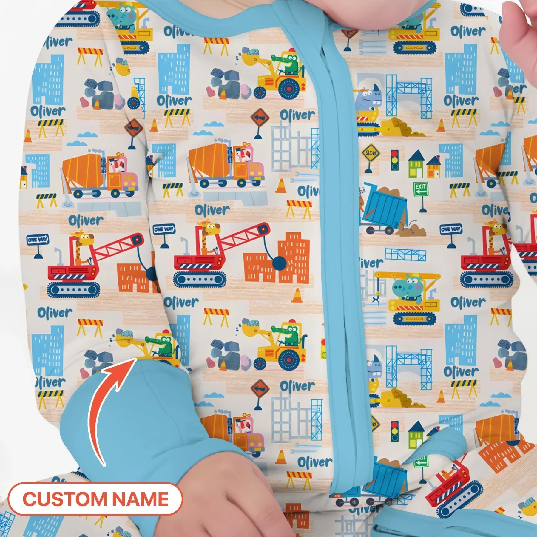 | Let your little one dive into construction fun with our Little Builder Friends Custom Name collection! Filled with colorful trucks, cranes, and city scenes, this playful design is perfect for kids who love building and exploring. Add your child’s custom name to make it uniquely theirs. Made from soft, breathable, stretchy fabric, these pajamas keep little builders comfy from playtime to bedtime. Bright, fun, and personalized — Little Builder Friends Custom Name brings big imagination to every day. |