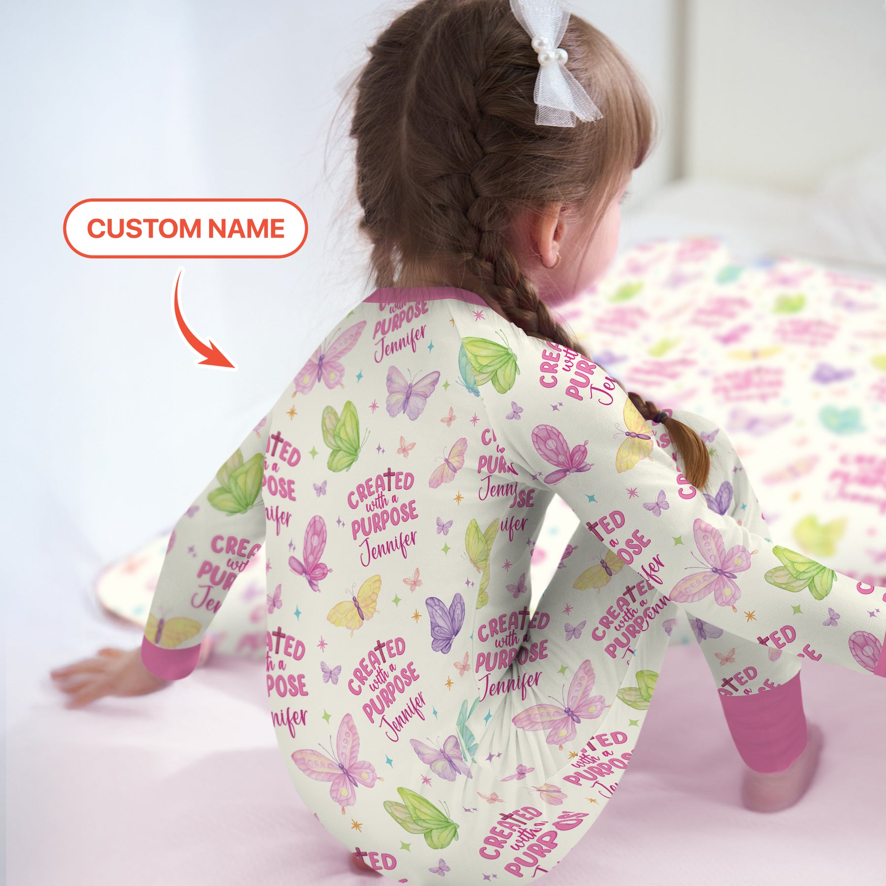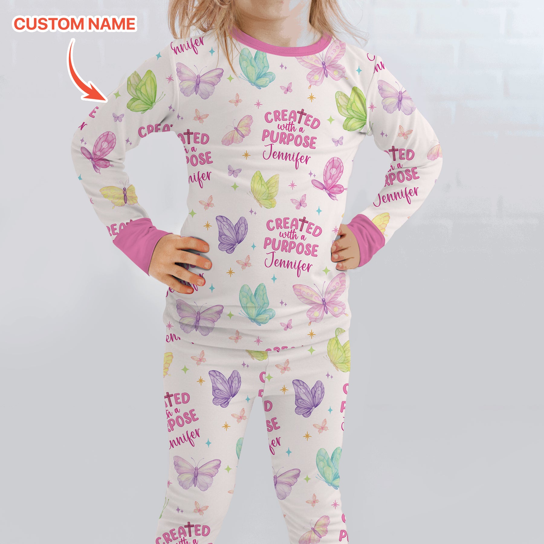 đ¸â¨ The Created With a Purpose â Custom Name Collection features uplifting affirmations surrounded by colorful butterflies and gentle pastel tones, symbolizing new beginnings and Godâs beautiful design. Personalized with your childâs name, these PJs wrap them in both comfort and encouragementâreminding them they are unique, loved, and created for something special. Perfect for bedtime snuggles or joyful mornings, this collection is more than sleepwearâitâs a daily reminder of Godâs purpose for their little life.