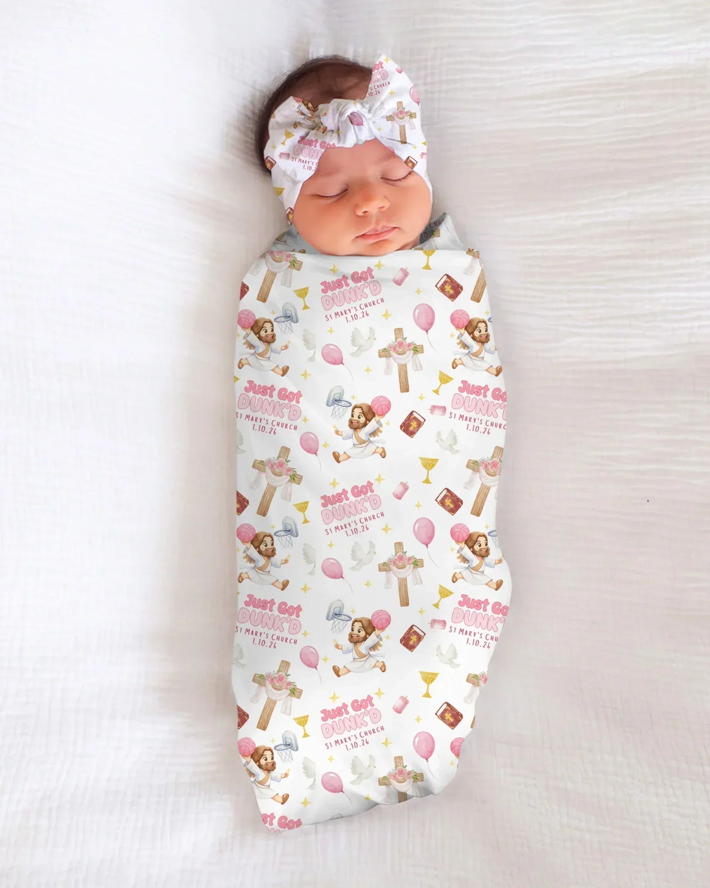 Custom Name Baptism Just Got Dunk'd swaddle blanket