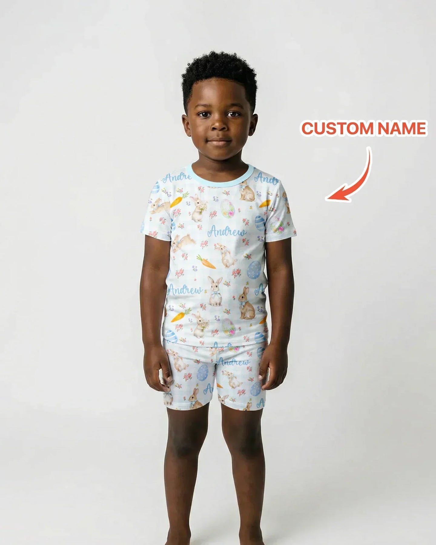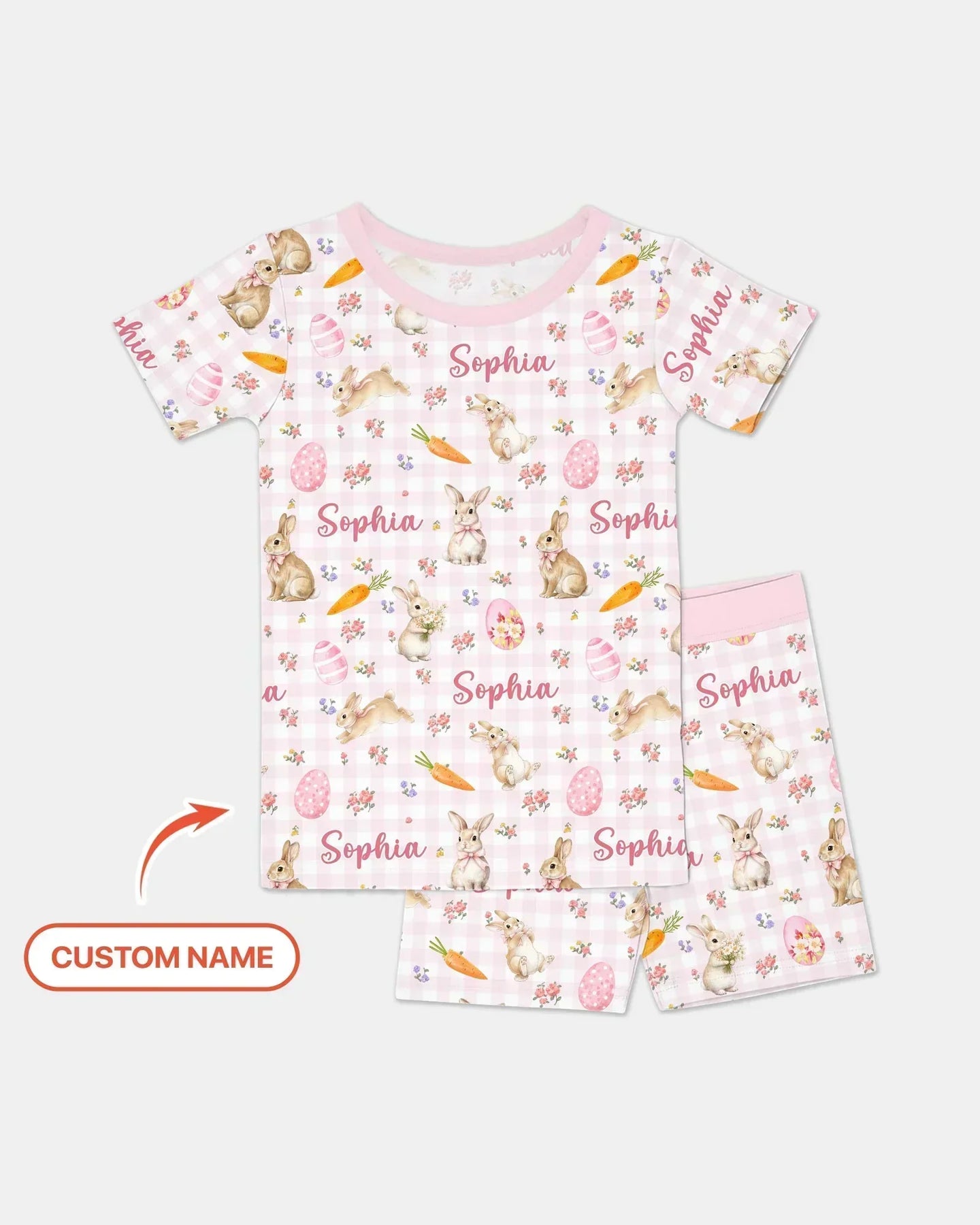 Custom Name Bunny Garden Two Piece Short Sleeve Shorts Pajama Set