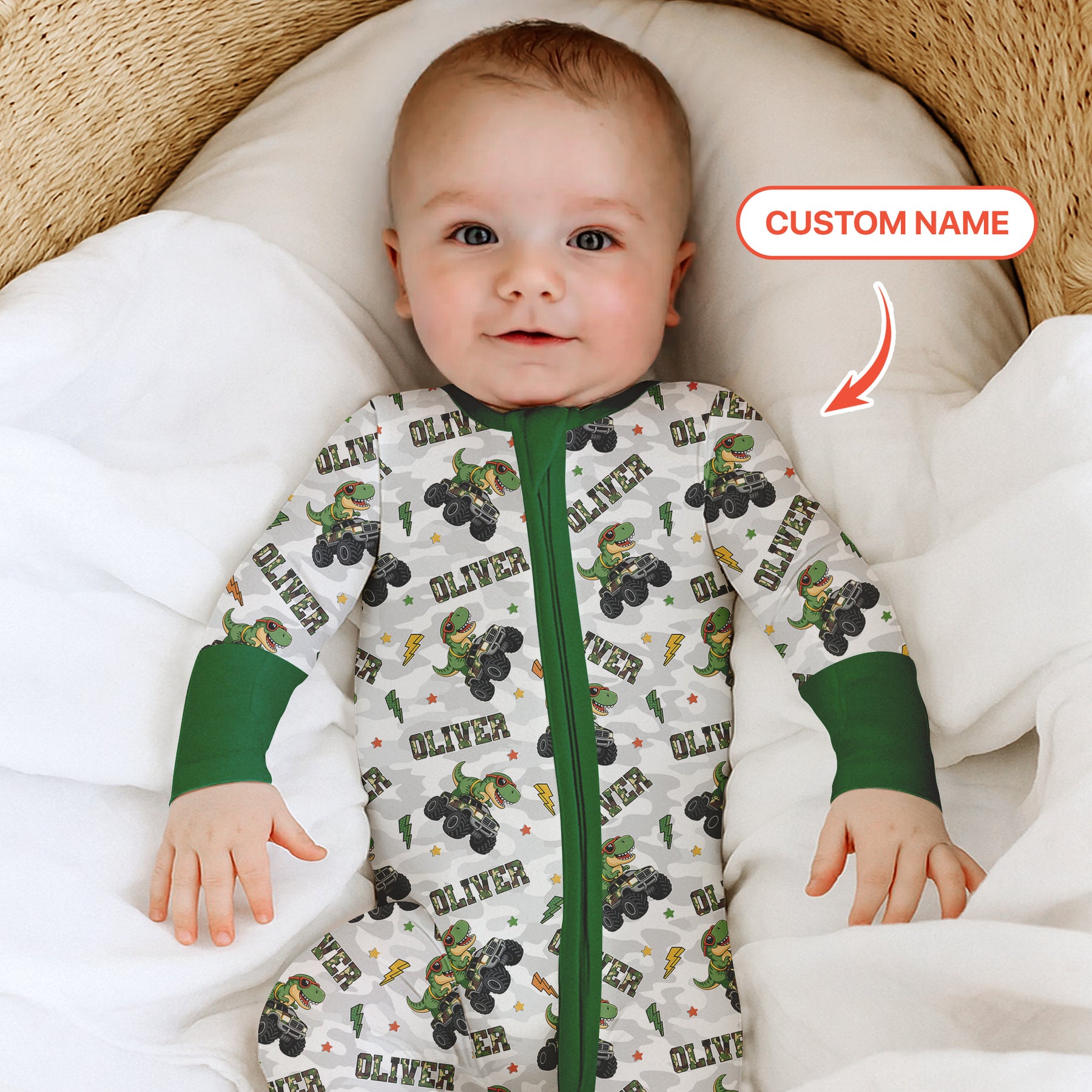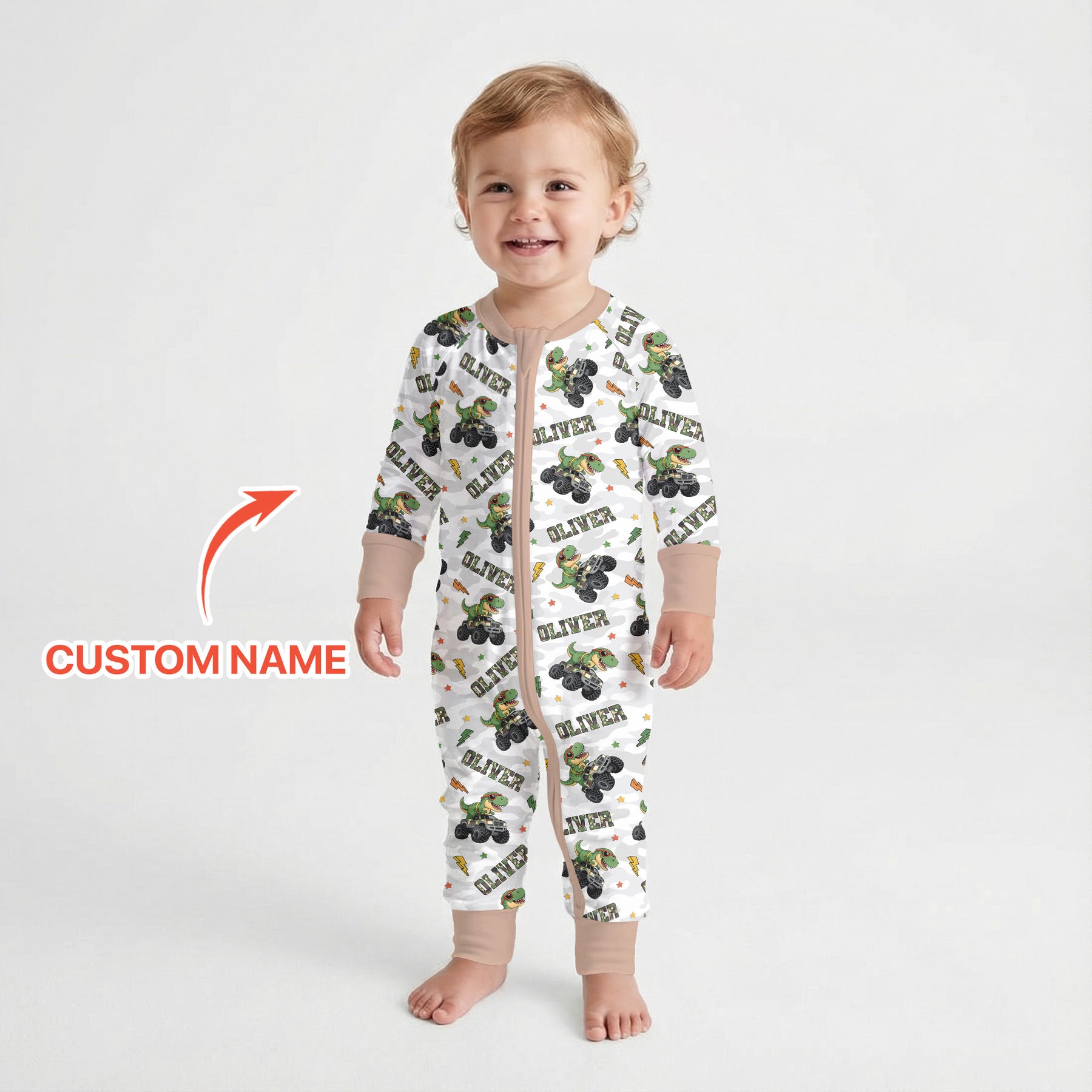 Let your little one enjoy big adventures with our "Custom Name Camo Trucker Dino"! Featuring a fun mix of dinosaurs, trucks, and camo patterns, this personalized piece adds excitement to every day. Soft, safe, and comfy for sensitive skin — and made even more special with your child’s name.