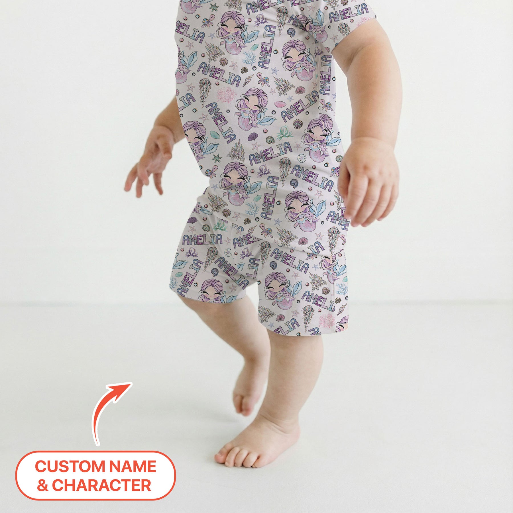 Custom Name Doodle Little Mermaid Two Piece Short Sleeve Shorts Pajama Set