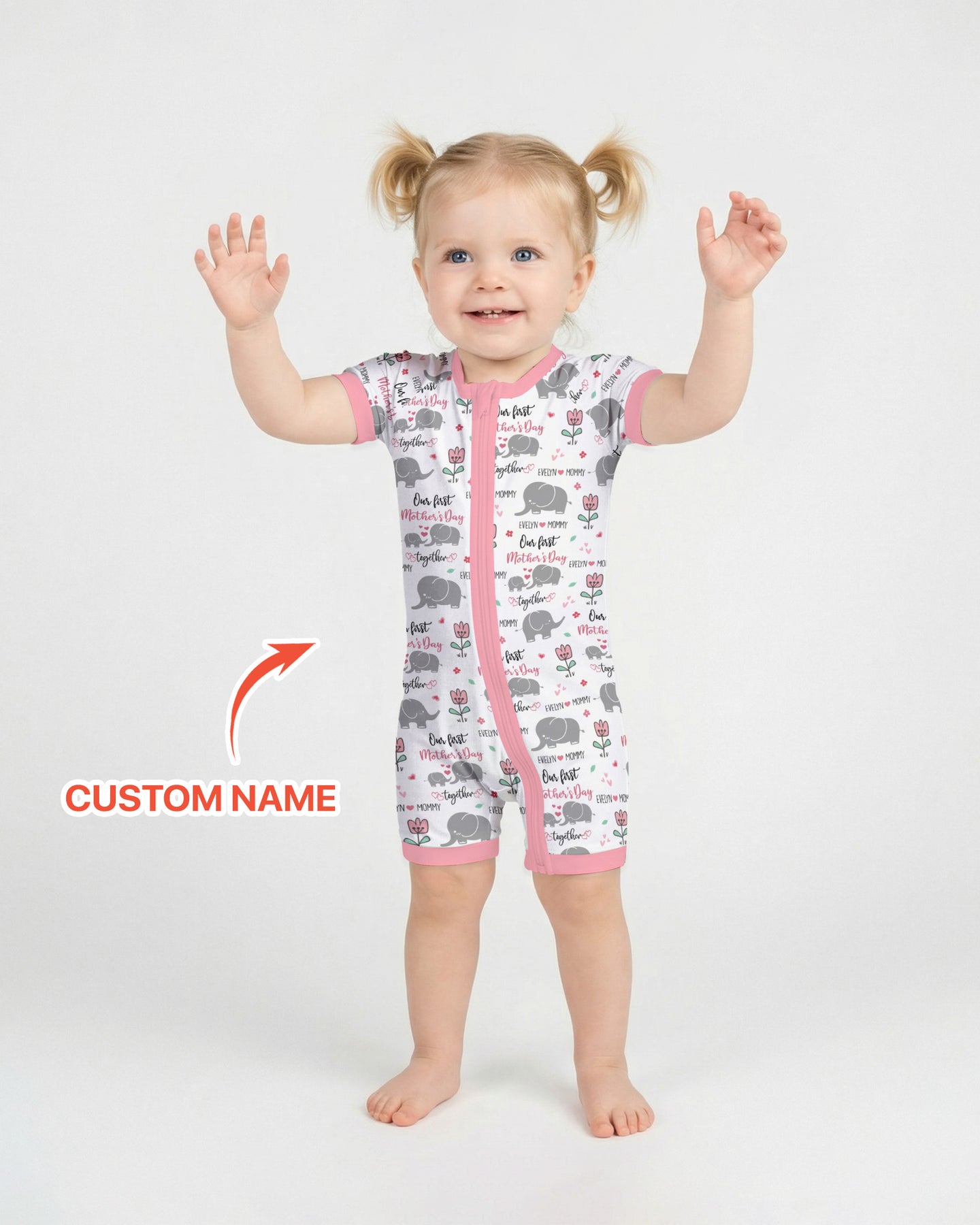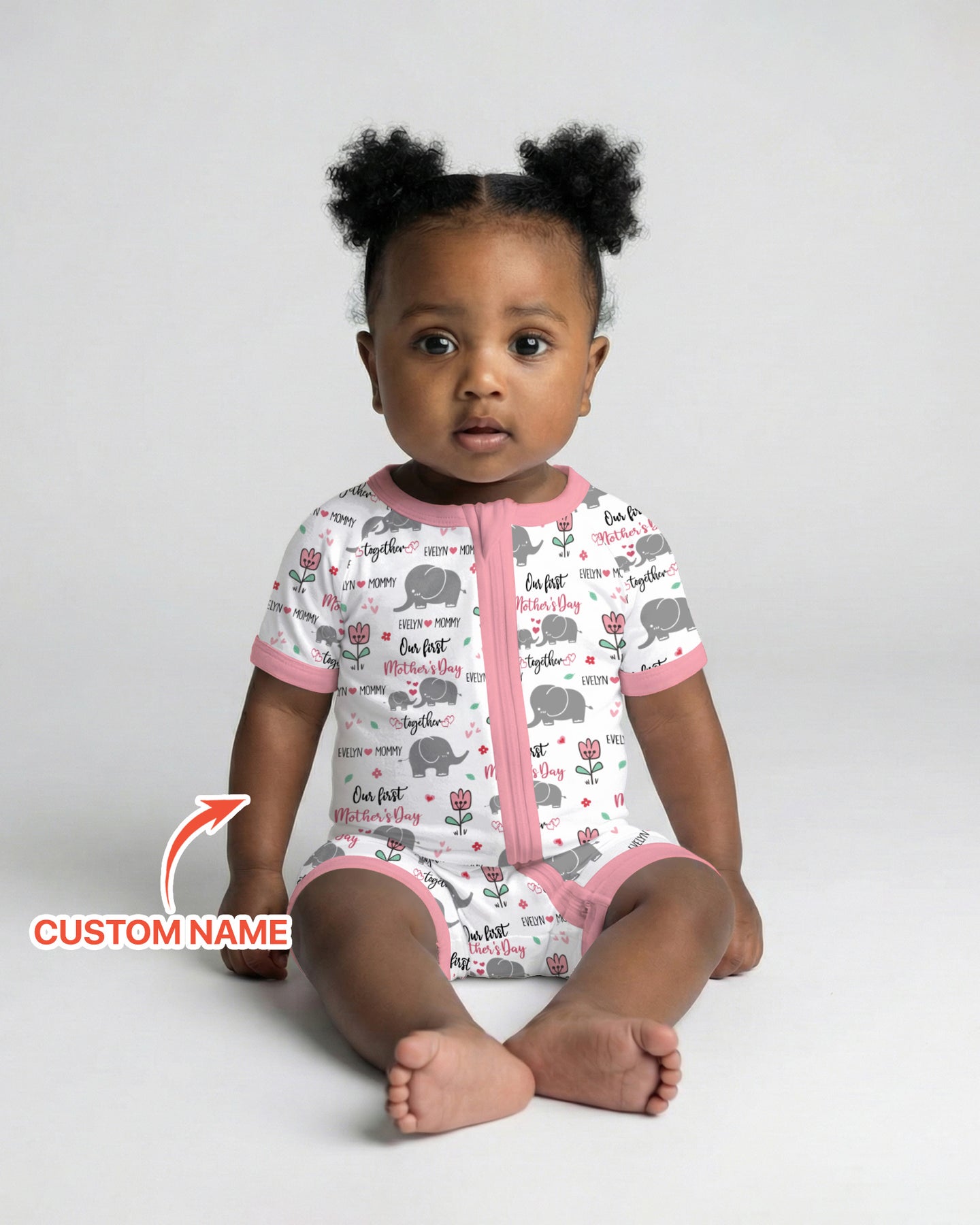 Custom Name Elephant Our First Mother's Day Shorty Zippy