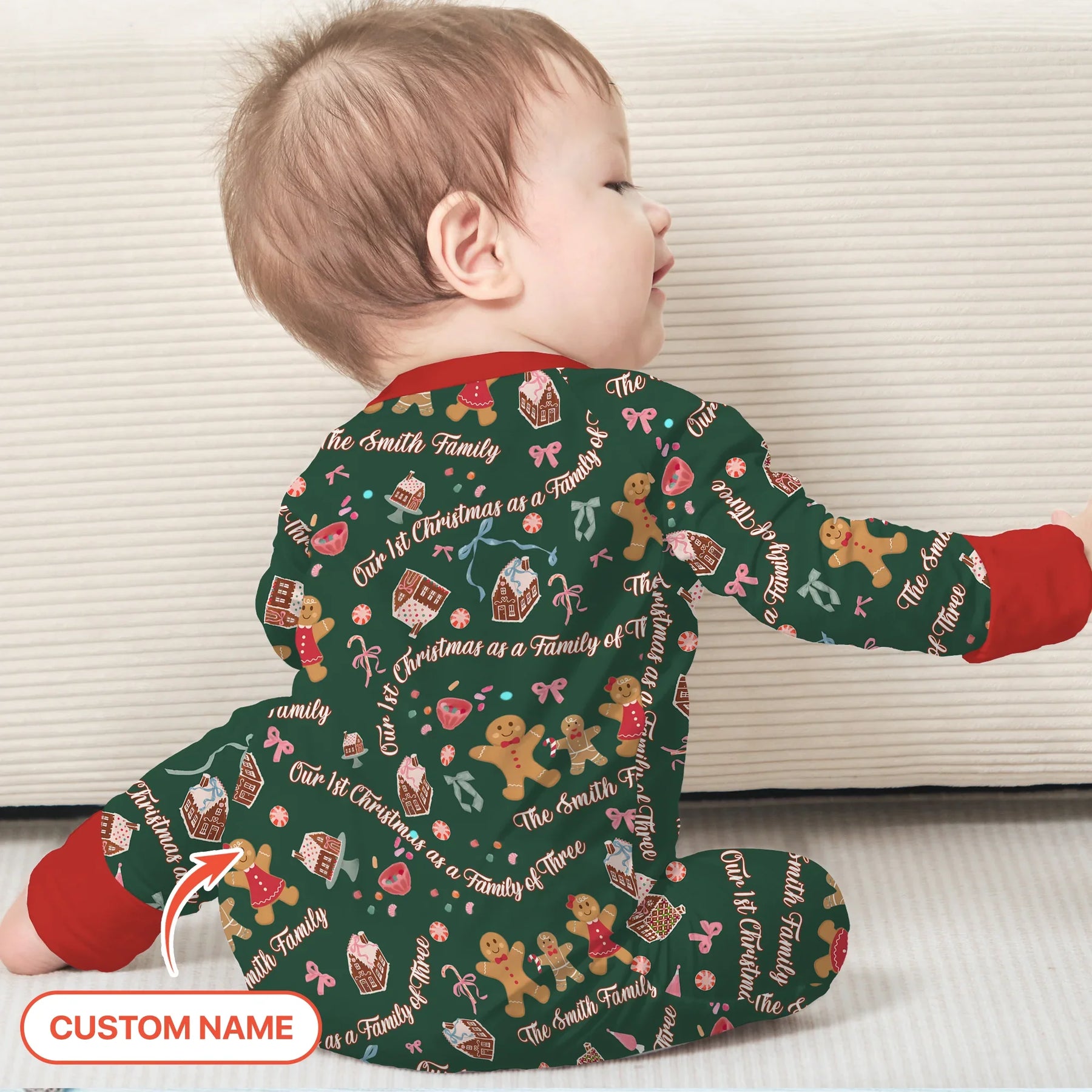 Sweeten your holiday season with our Custom Name Family Gingerbread Zippy & Pajamas. Made from buttery-soft, breathable bamboo fabric, these cozy PJs feature adorable gingerbread families and your custom names — perfect for matching moments, Christmas mornings, and sweet family memories.