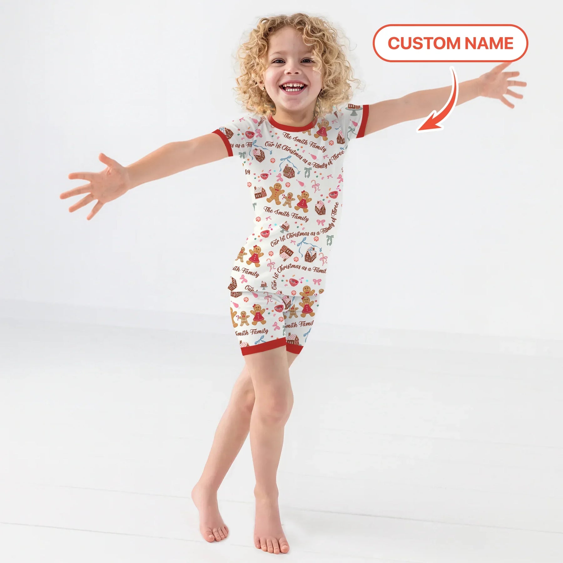 Custom Name Family Gingerbread Two Piece Short Sleeve Shorts Pajama Set