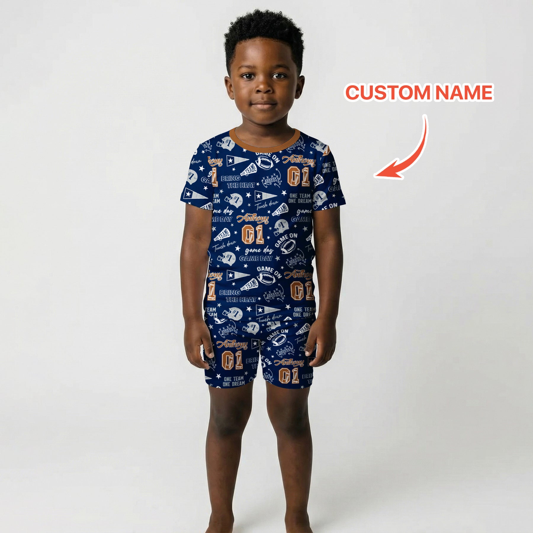 Custom Name Football Game Day Two Piece Short Sleeve Shorts Pajama Set