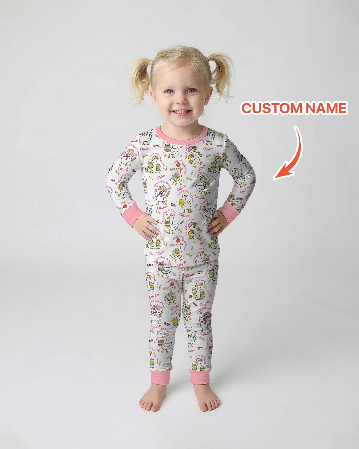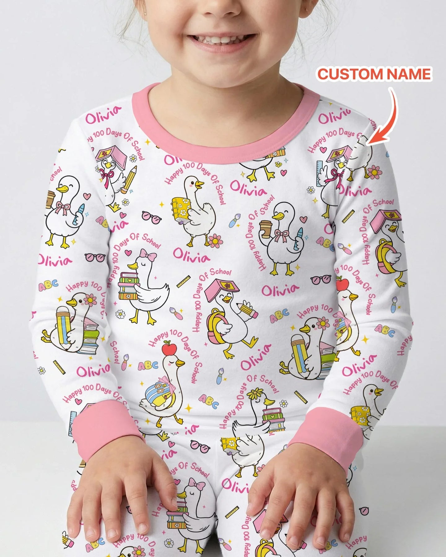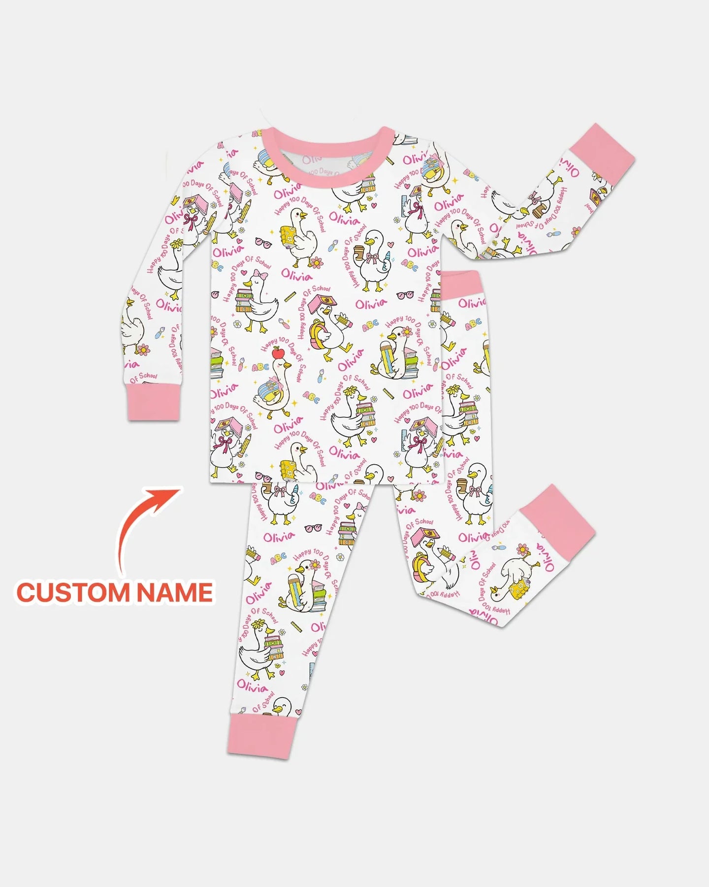 Custom Name Goose Happy 100 Days Of School Two Piece Long Sleeve Pajama Set