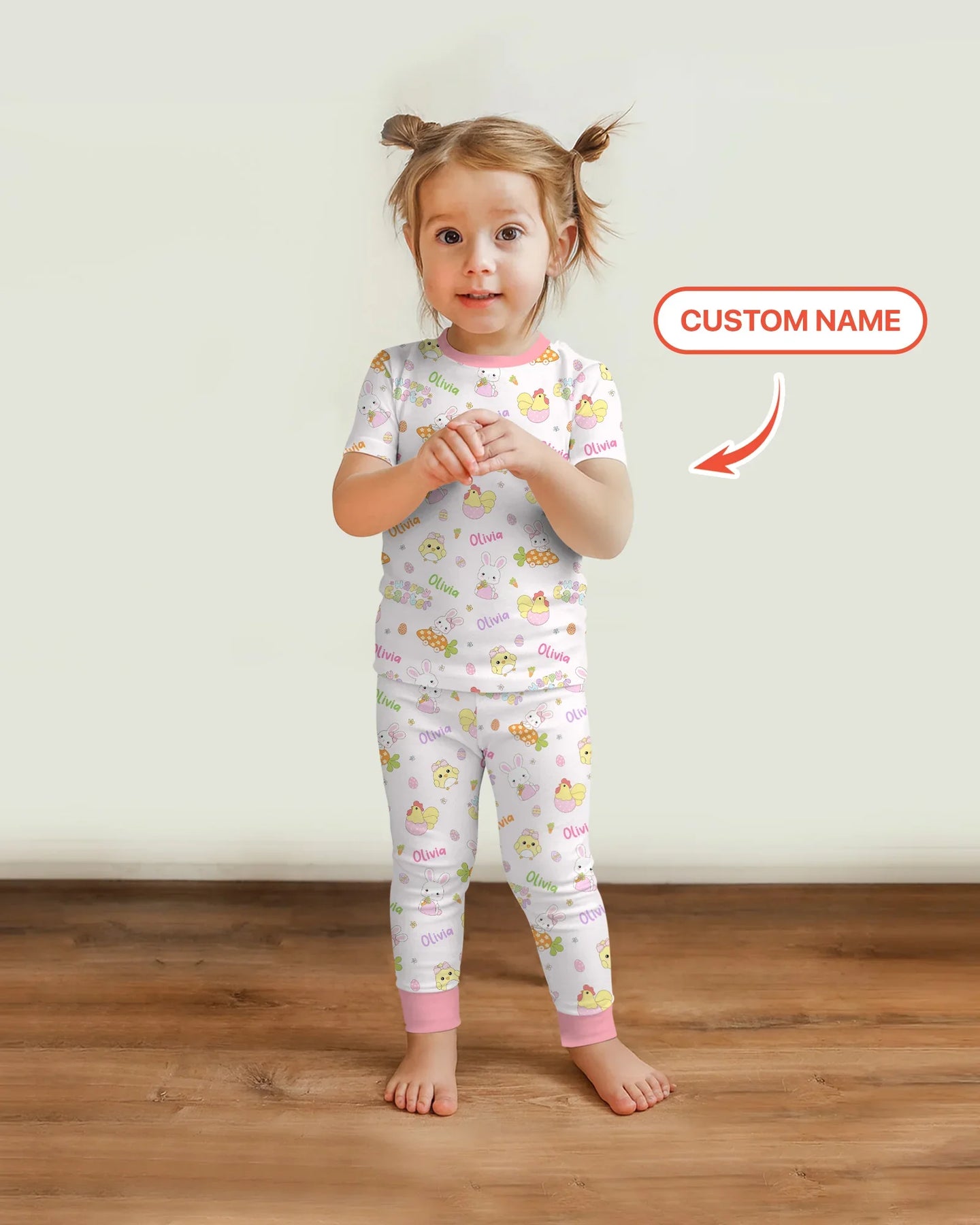 Custom name Happy Easter Two Piece Short Sleeve Pajama Set