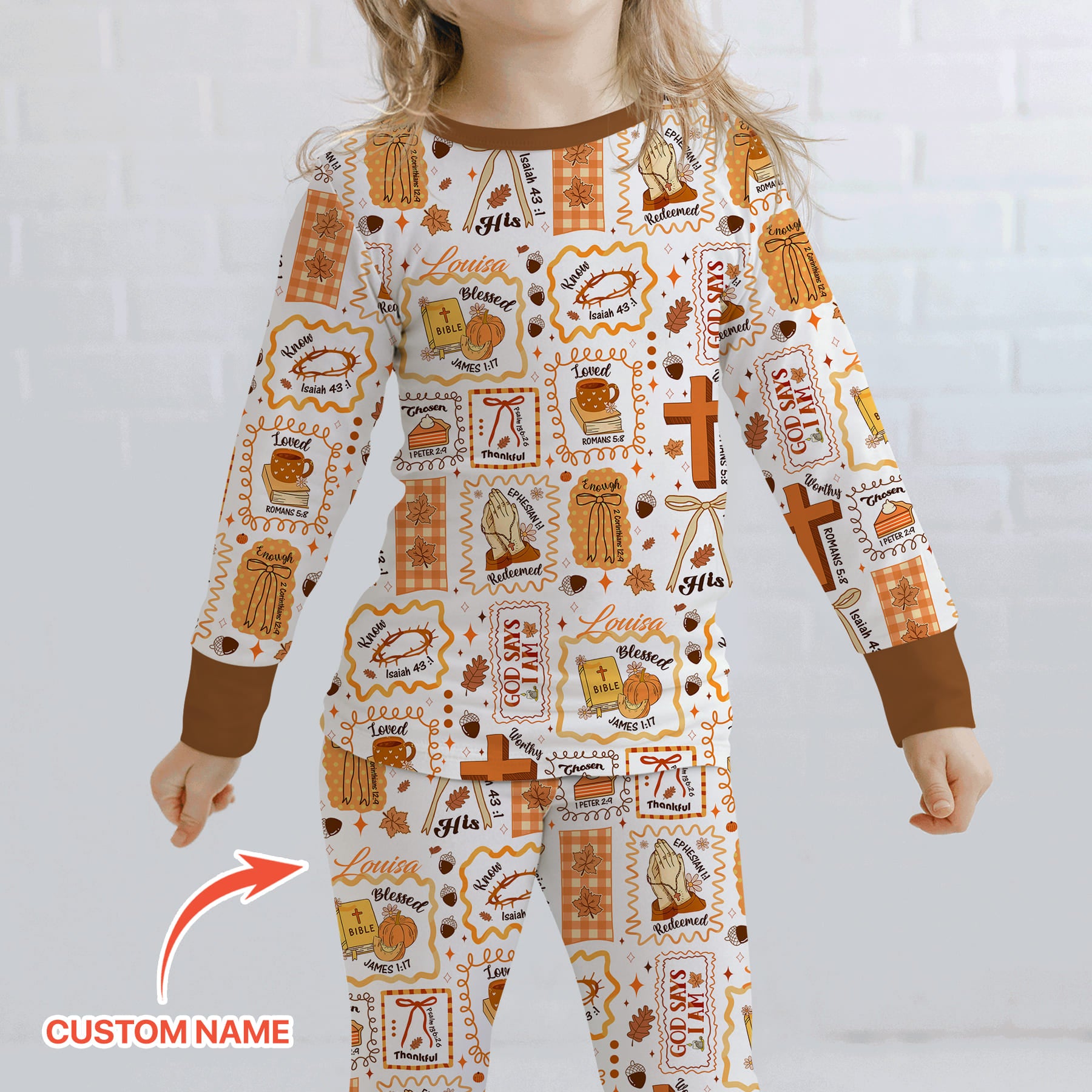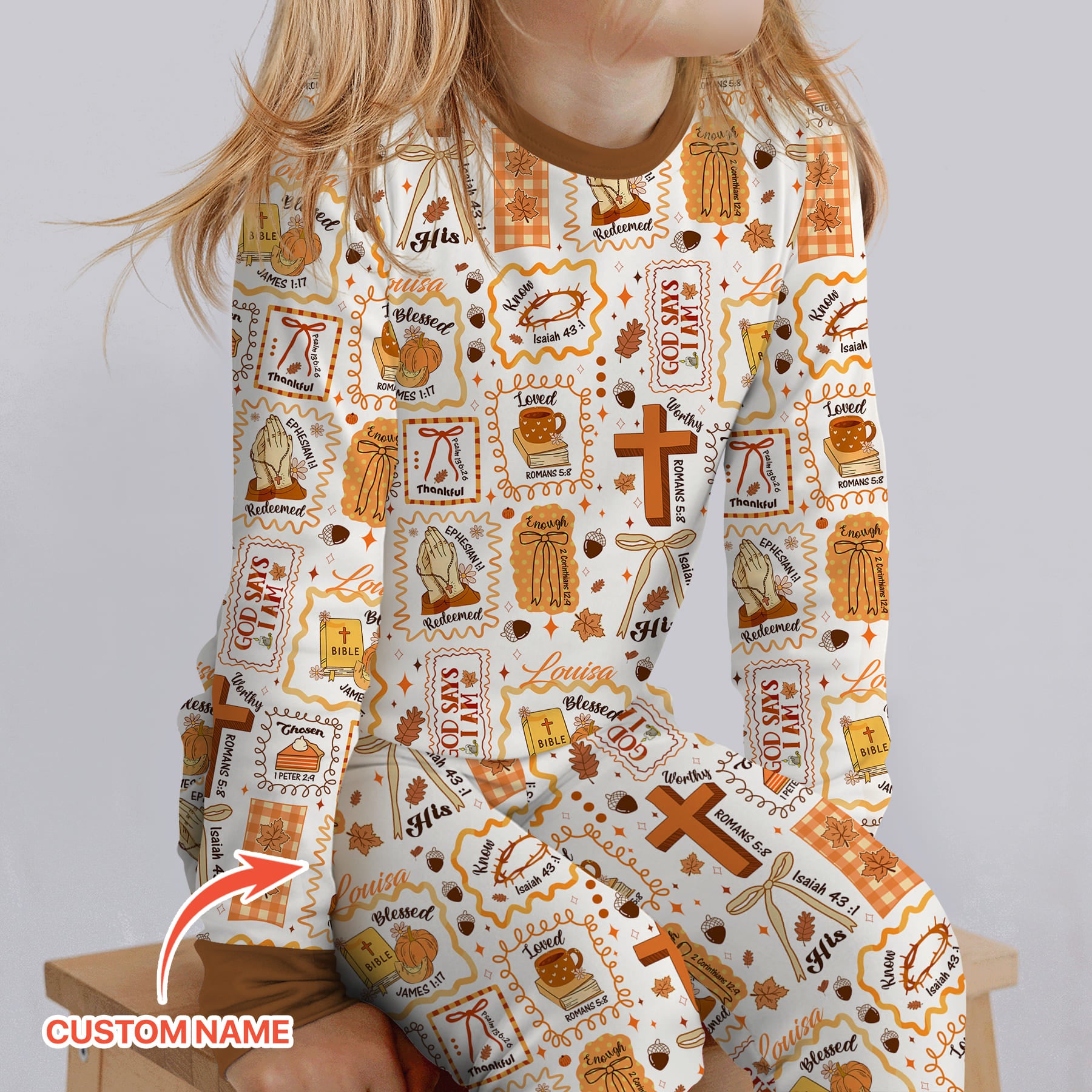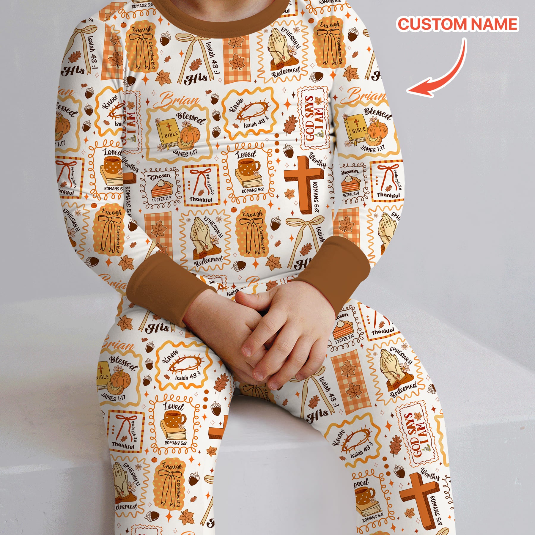 Custom Name I Am Thankful For Jesus Two Piece Long Sleeve Pajama Set