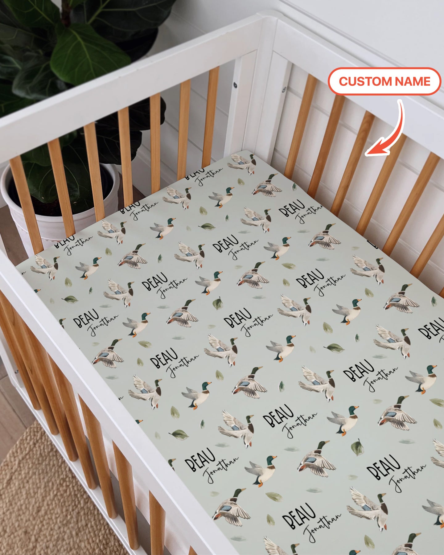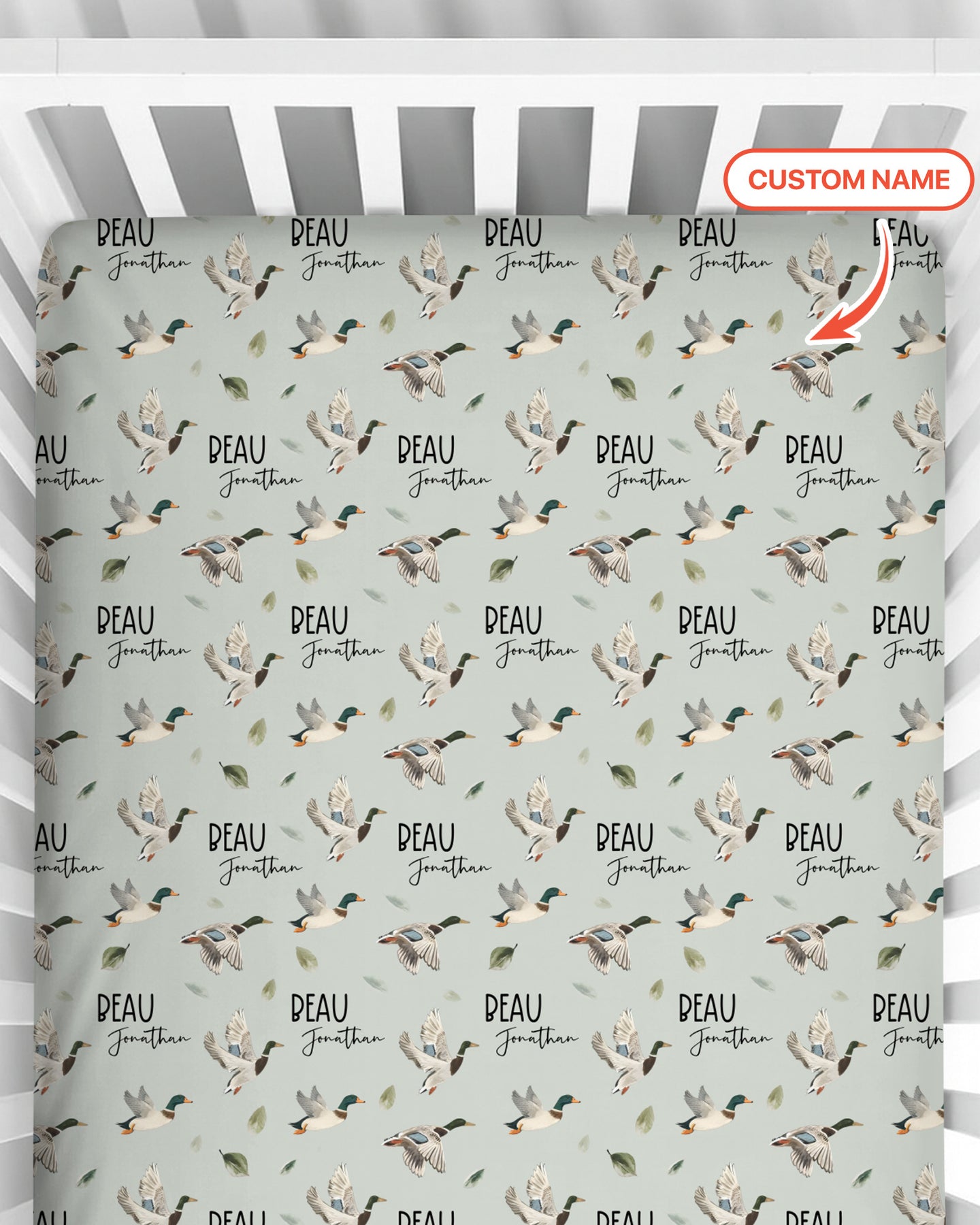 Custom Name Mallard Duck Bamboo Zippies & PJ Sets bring the calm beauty of the outdoors to your little one’s everyday comfort. Featuring graceful flying mallard ducks, soft drifting leaves, and your child’s custom name woven throughout the design, this nature-inspired print is perfect for little adventurers and outdoor-loving families.