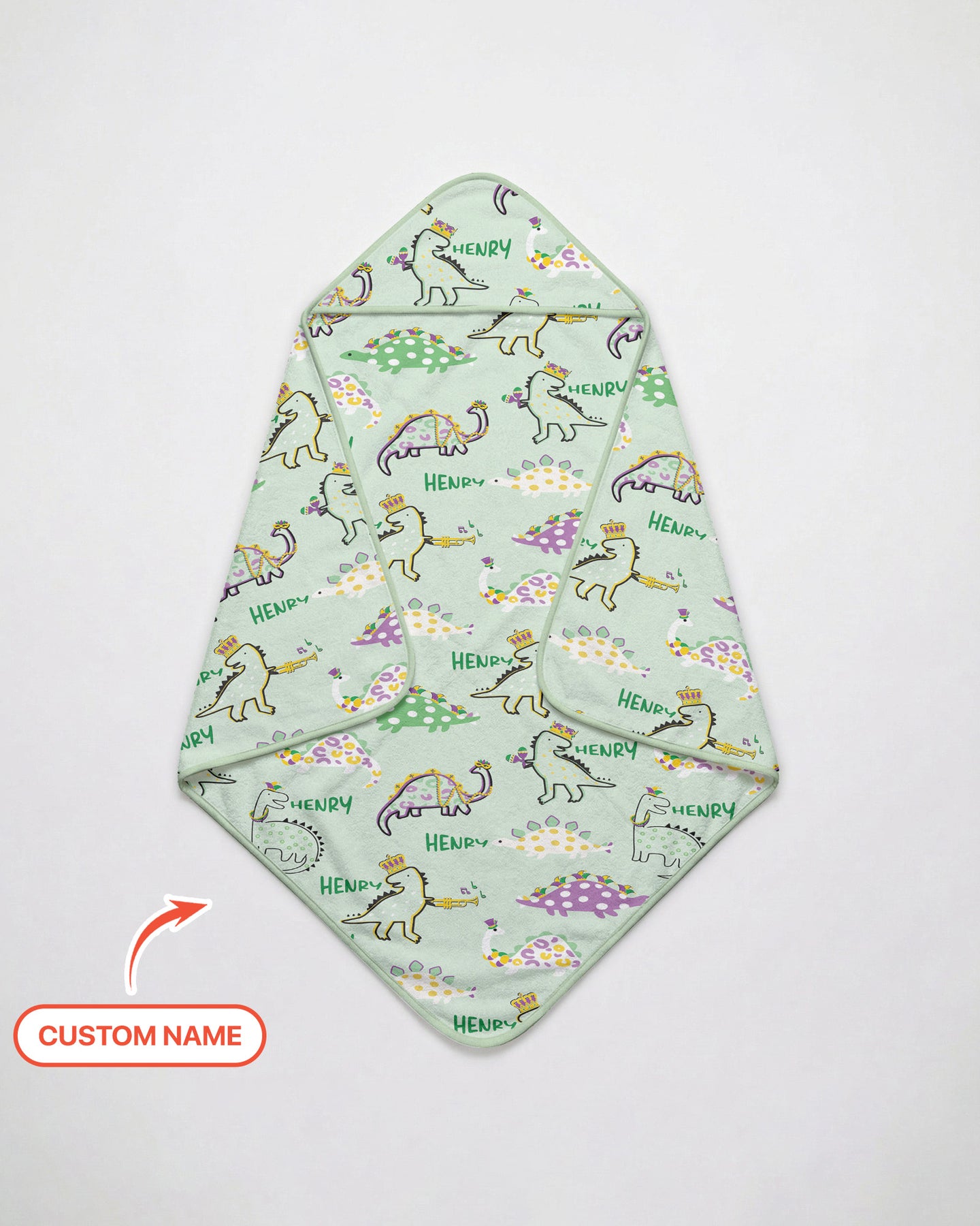 Custom Name Mardi Gras Saurus Hooded Towel Set