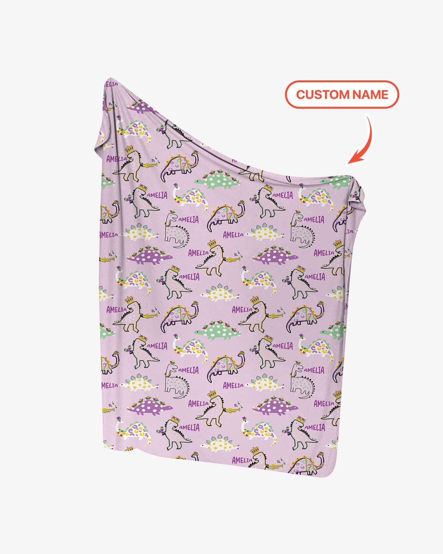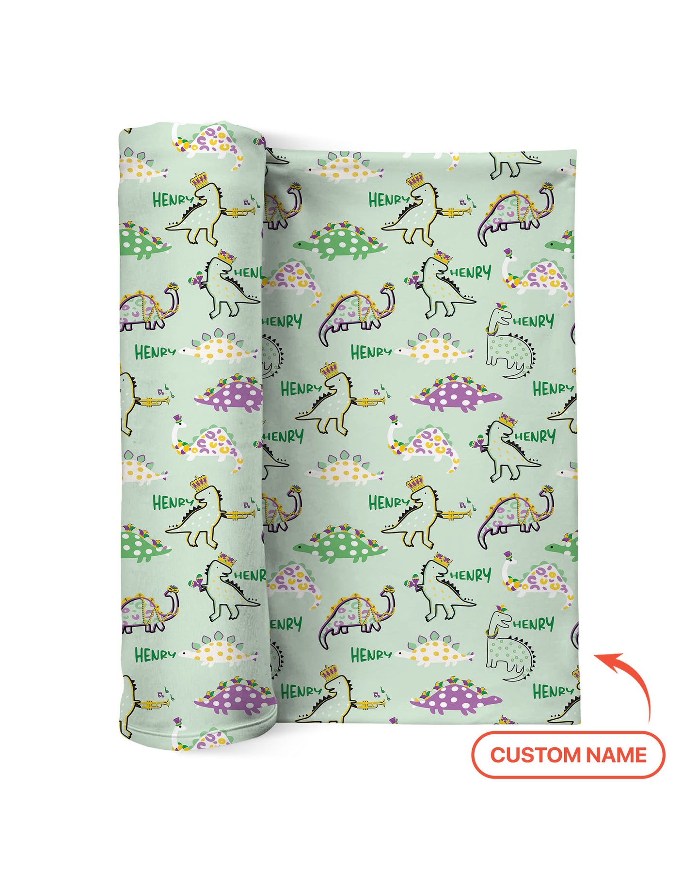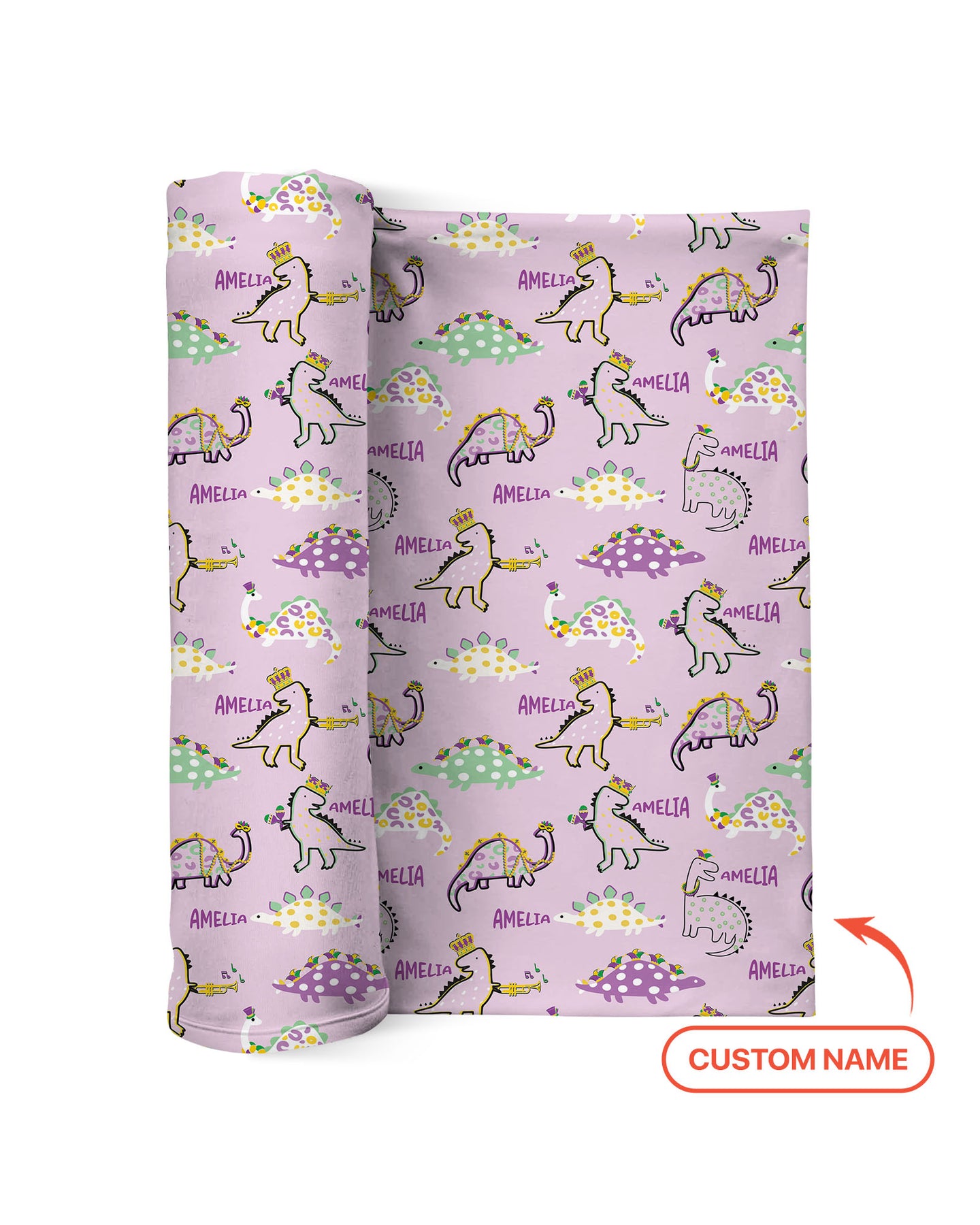 Custom Name Mardi Gras Saurus Swaddle Blanket