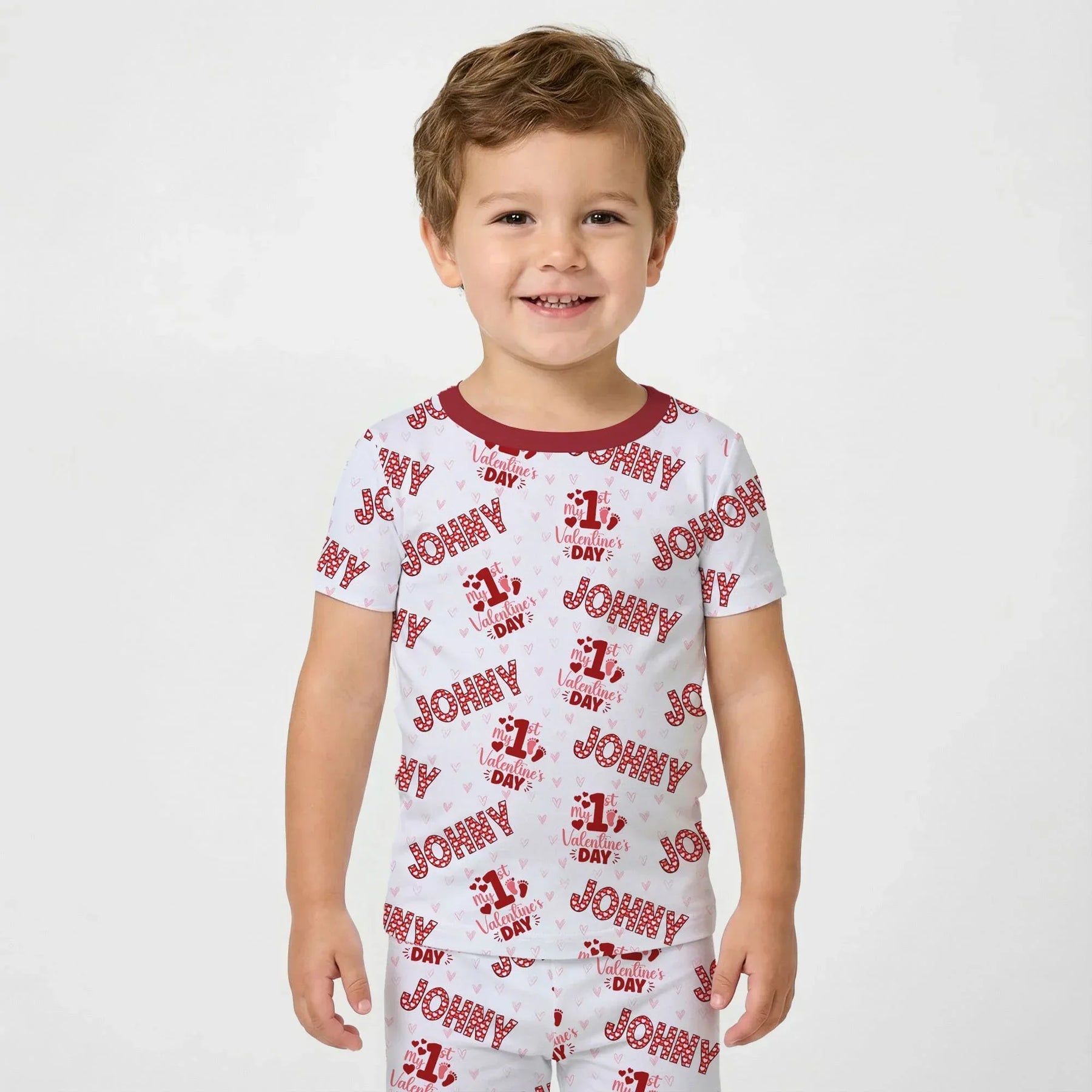 Custom Name My 1st Valentine's Day Two Piece Short Sleeve Pajama Set