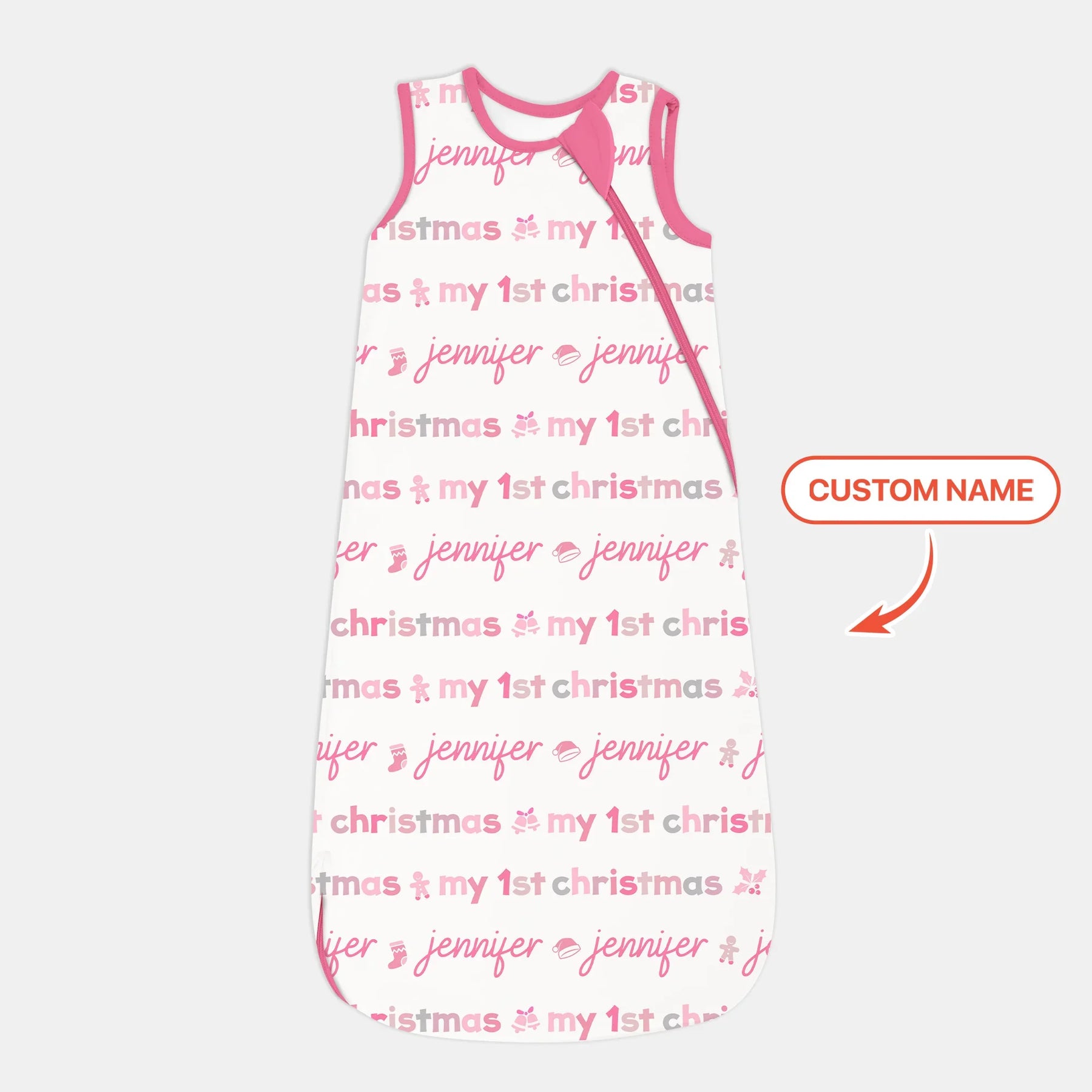 Celebrate your little one’s very first Christmas in cozy color! This sweet minimalist design features festive icons and your baby’s name in soft, cheerful hues — available in Pink, Blue, and Classic Christmas colorways. Made from buttery-soft, breathable bamboo, it’s perfect for snuggly nights, holiday photos, and making those first Christmas memories extra special. 🎄💖💙💚