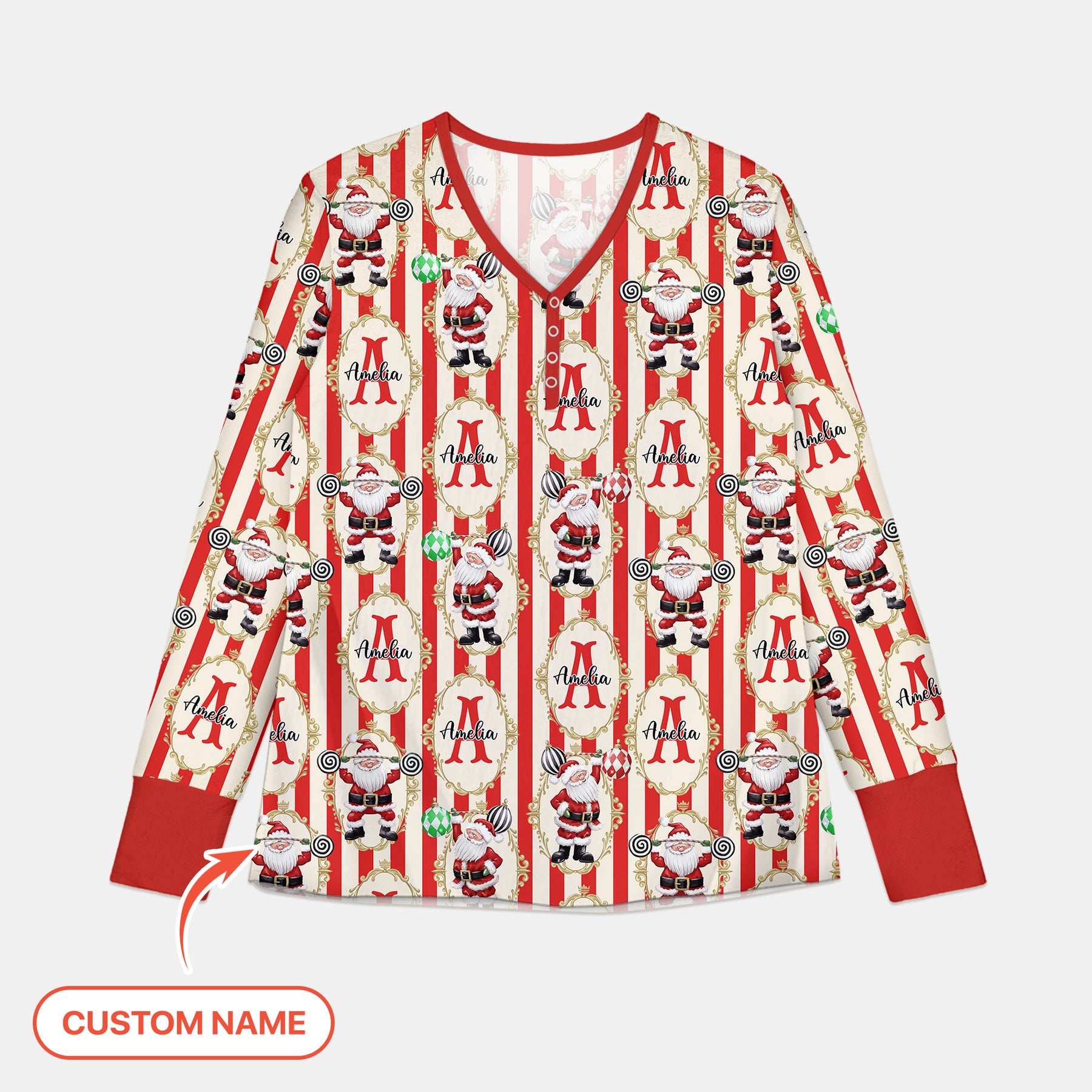Ho-ho-holiday dreams start here! This festive red-and-cream stripe print features jolly Santas, candy details, and your little one’s name for a magical personalized touch. Made from buttery-soft bamboo fabric, these zippies and PJs are cozy, breathable, and perfect for Christmas cuddles and morning photos! ❤️🎄